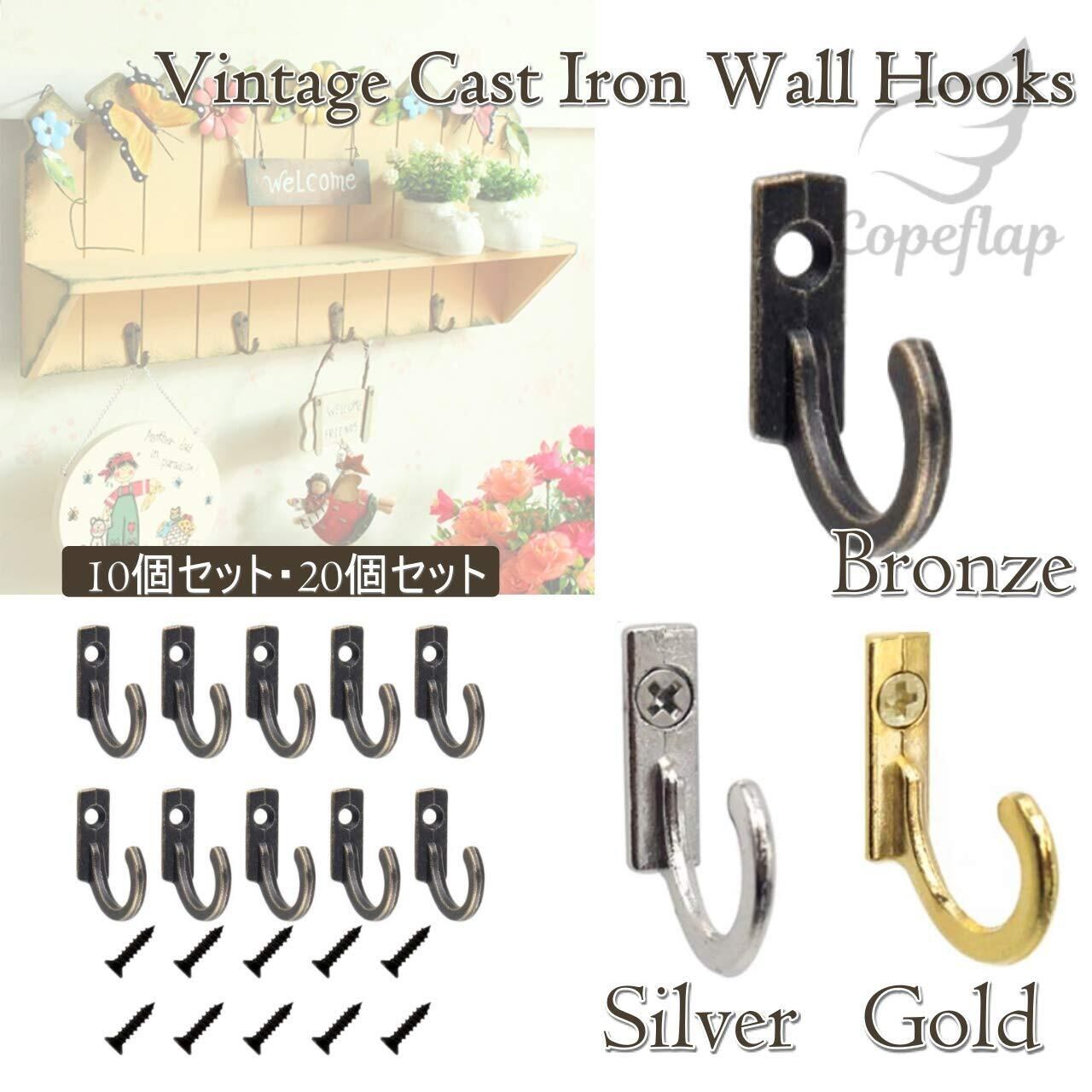 Copeflap アンティーク フック ねじ式 フックねじ ねじ止め (シルバー,10個)