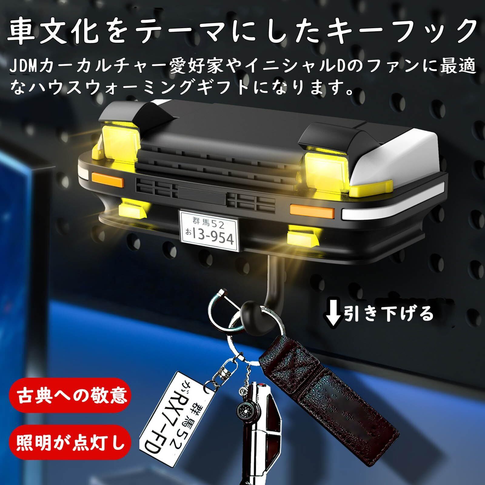 【マンガの車 キーハンガー】車文化をテーマにしたキーフックは、フリップオーバーライトを採用し、鍵を掛ける際に優しい光を点灯る特別なおもしろグッズです。カーカルチャーと86アニメのレトロ感を演出し、玄関で「古典への敬意」を日常的に表現。