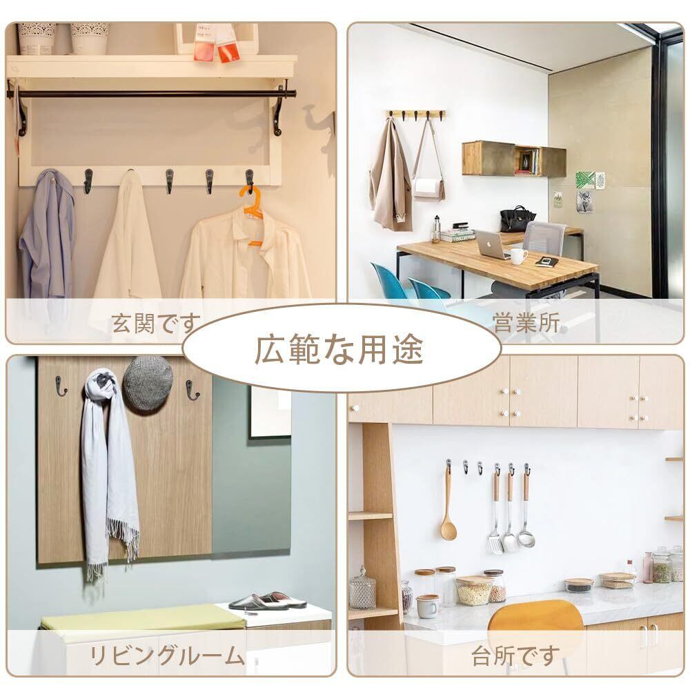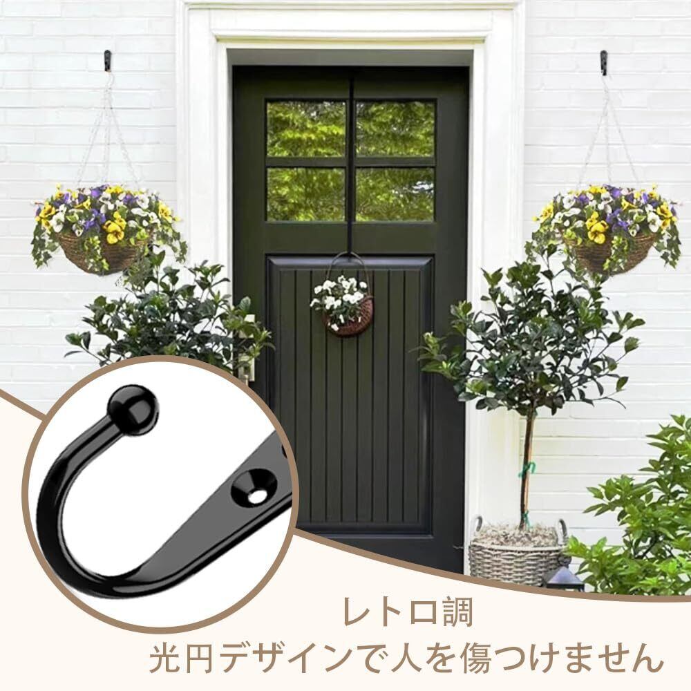 壁掛けフック ウォールフック ウォールフック ネジフック付き 鍵ホック おしゃれ 高耐荷重 吊り下げ収納 アンティーク調 金具落下防止 浴室 玄関 寝間 台所 洗面所 洋室 10個セット (ブラック)