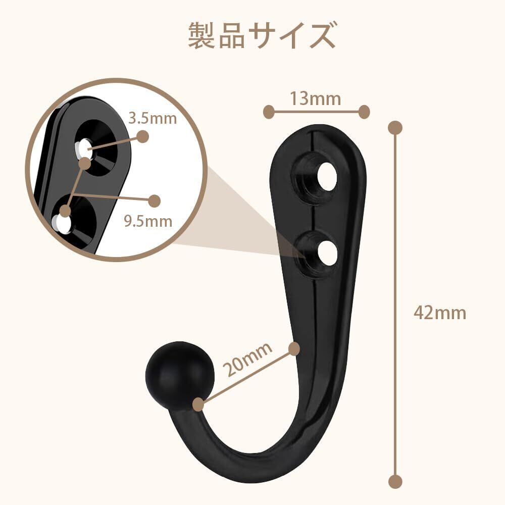 【パッケージ内容】壁掛けフック10個セット、20本のネジを支えます、ブラック。