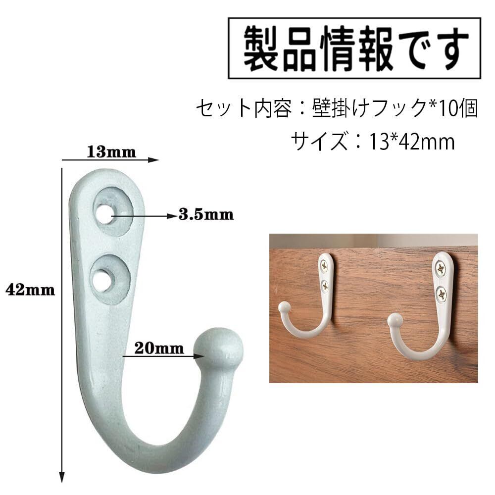 【製品情報です】セット内容:壁掛けフック*10個。サイズ:13*42mm。