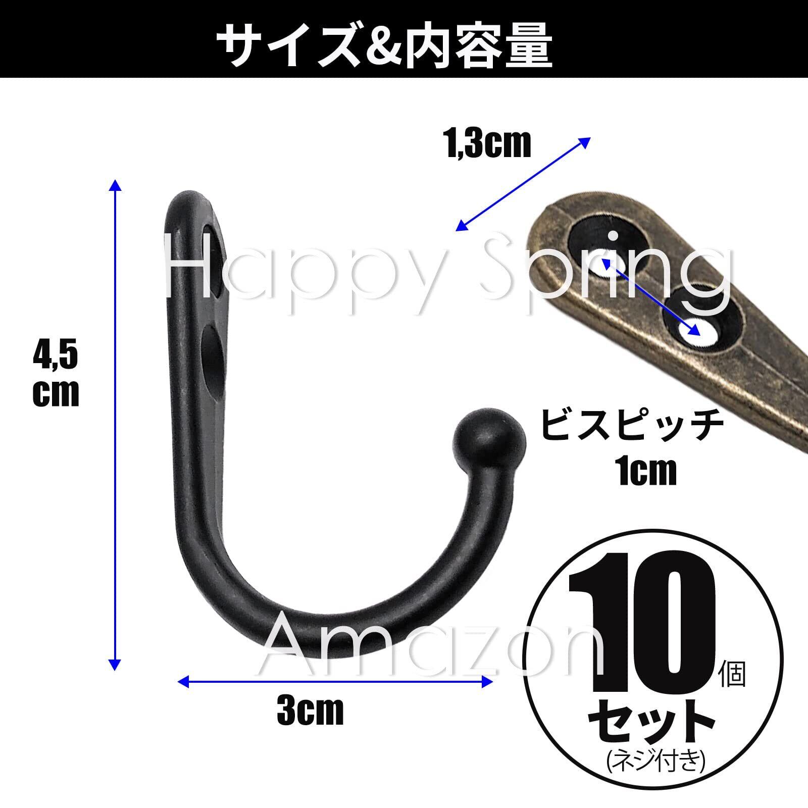 Happy Spring フック アンティーク 壁 10個入 N (黒)