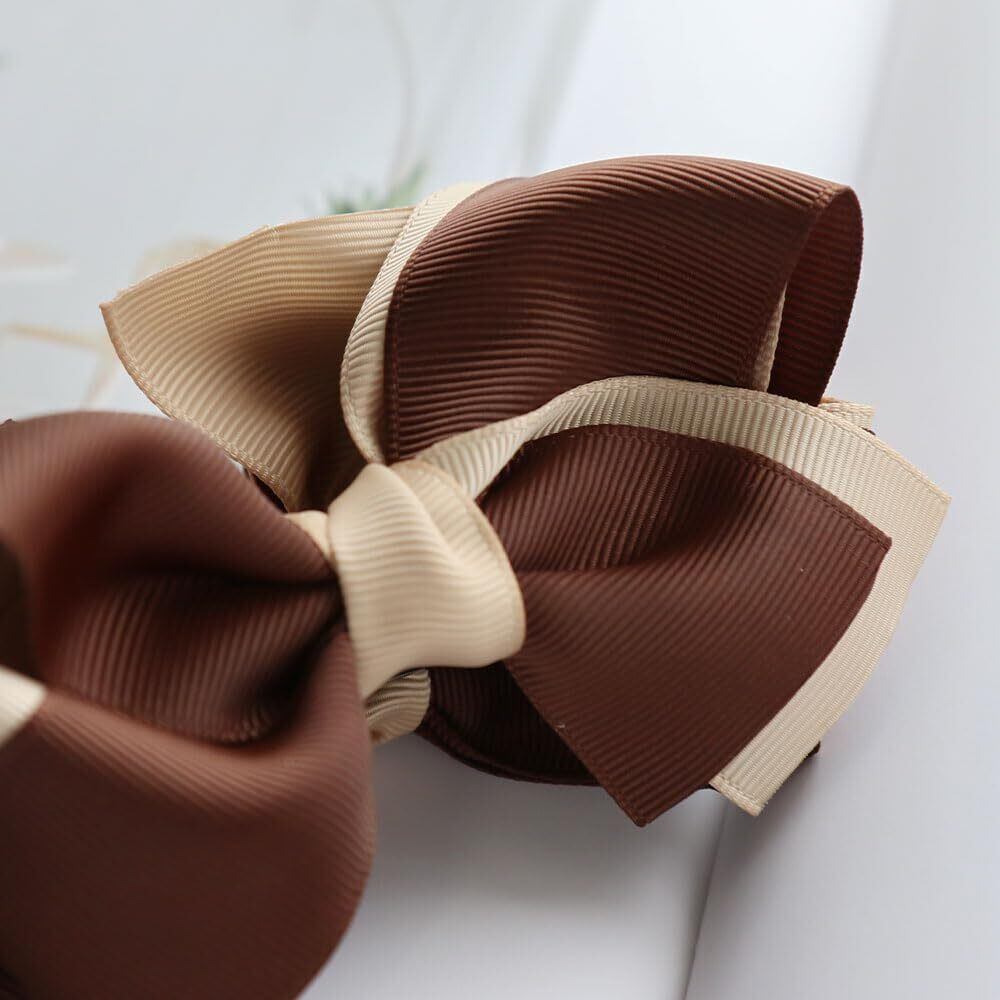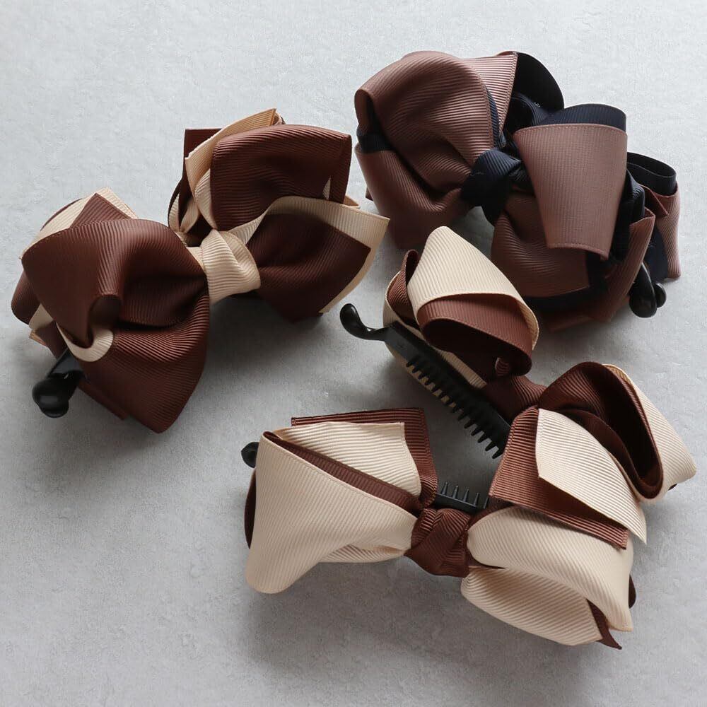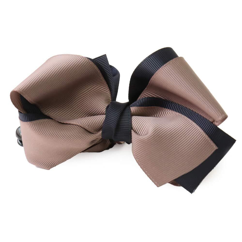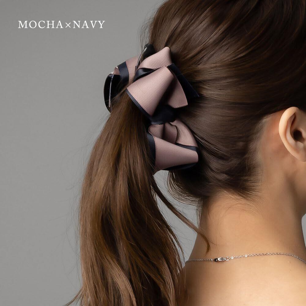 [ジュエルボックス] JewelVOX バナナクリップ ヘアアクセサリー レディース リボン バイカラー グログラン 大きめ 大人 (モカ×ネイビー)