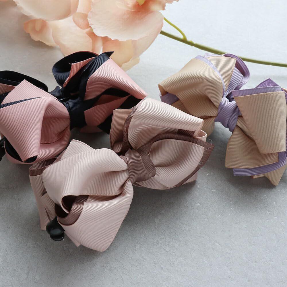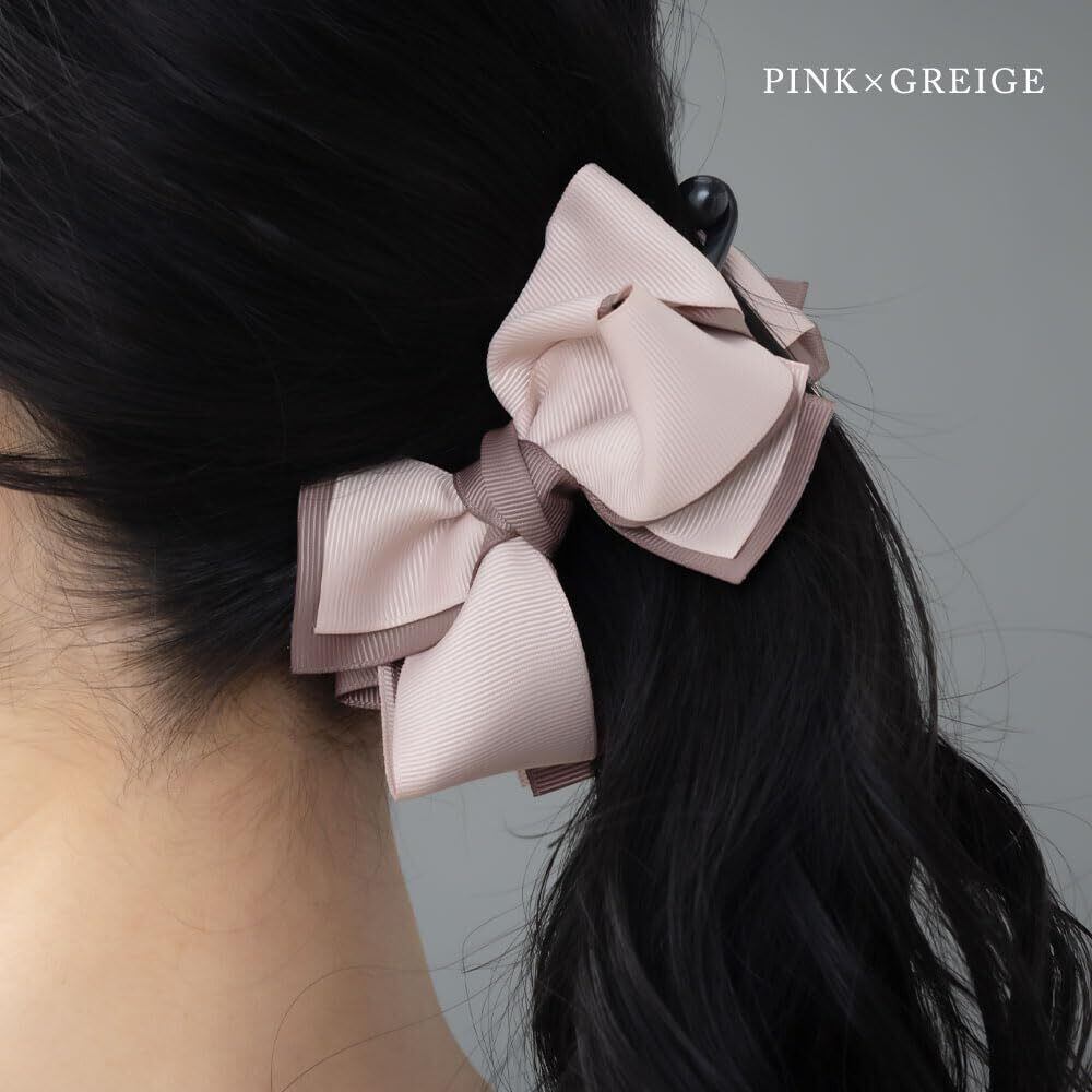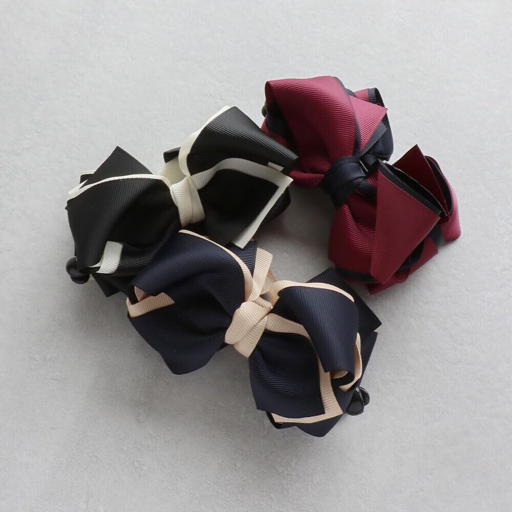 バイカラーのグログランリボンをふんわり結んだバナナクリップ大きめサイズのリボンモチーフは存在感もありアップスタイルを華やかに仕上げてくれます!程よい存在感をプラスしてくれるデザインはデイリーにはもちろんパーティーシーンやオフィススタイルまでOK。