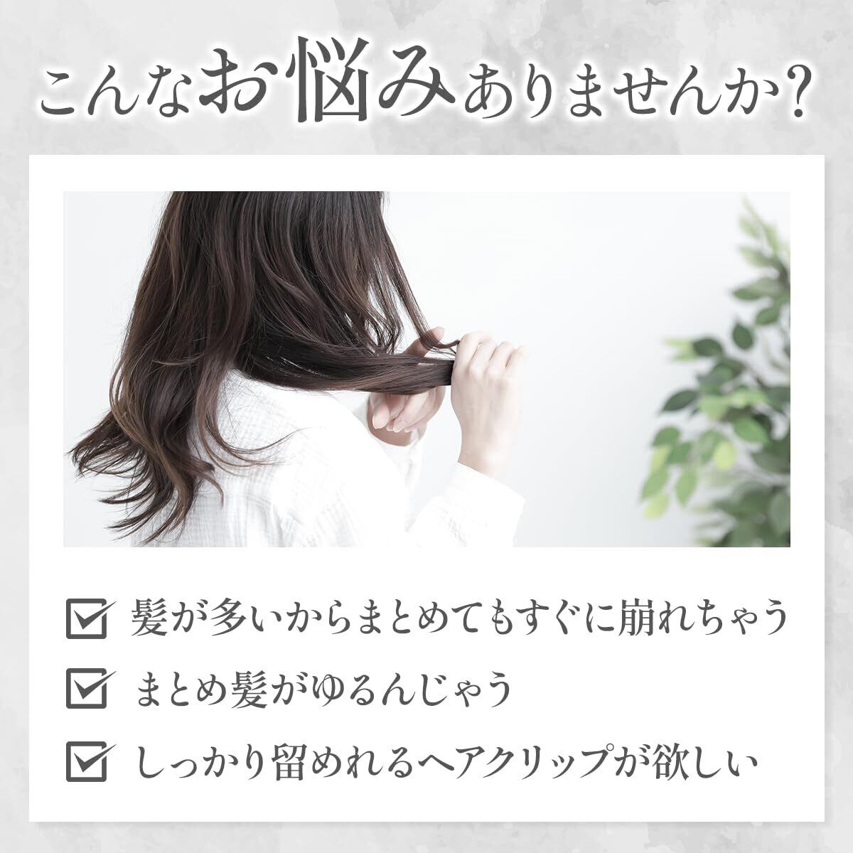 毛量が多くてまとめ髪にお困りの方のために・・・。 ヘアゴムを使わず、ヘアクリップだけで簡単にまとめたいのに、すぐに緩んでうまくまとめられない方必見!BiFareの「ガッチリップGatchilip」がそのお悩み解決します!