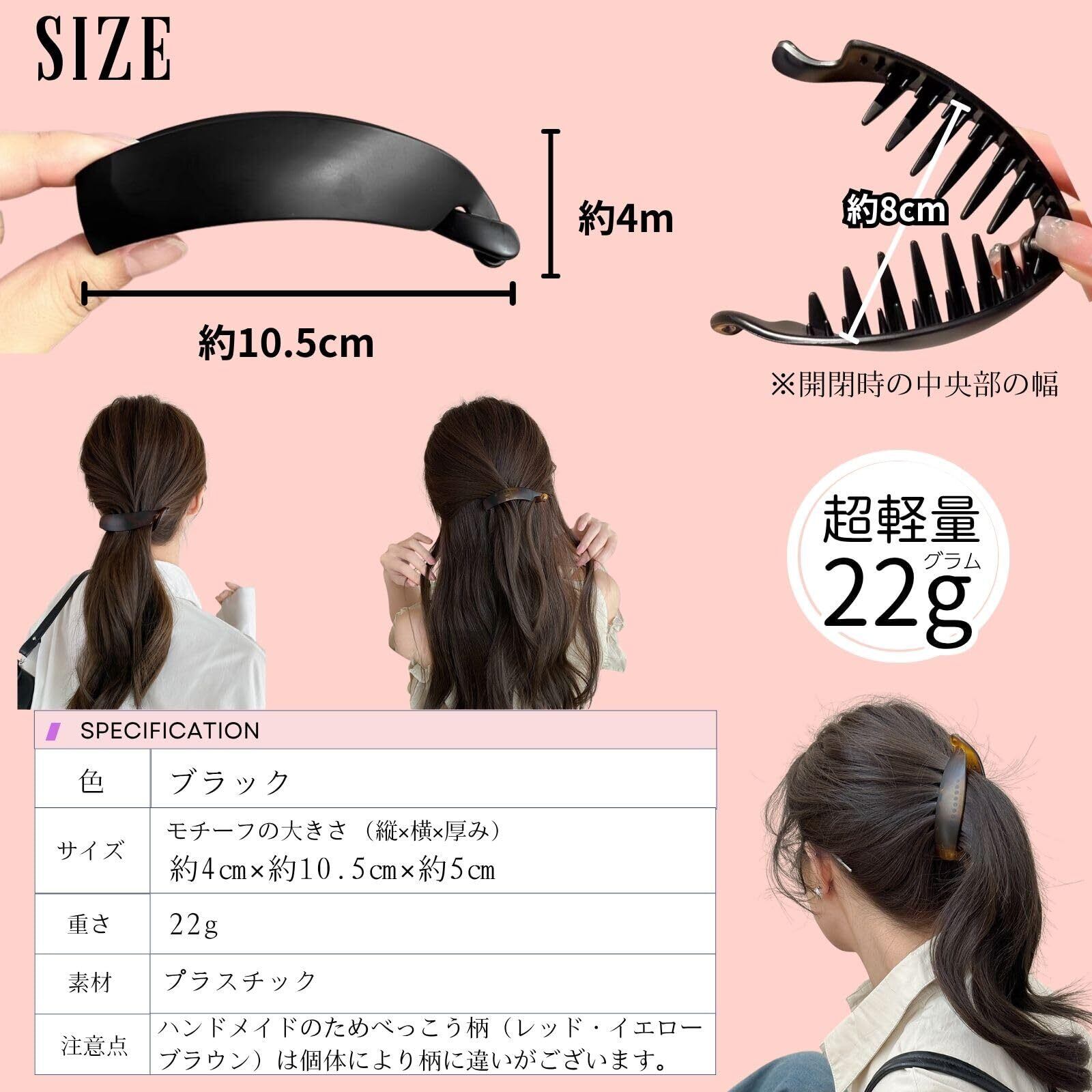 TheFirstGrain バナナクリップ 大きめ 毛量多い しっかりとまる 多毛 上品 ヘアクリップ シンプル べっこう柄 2個入り (レッドブラウン, L)