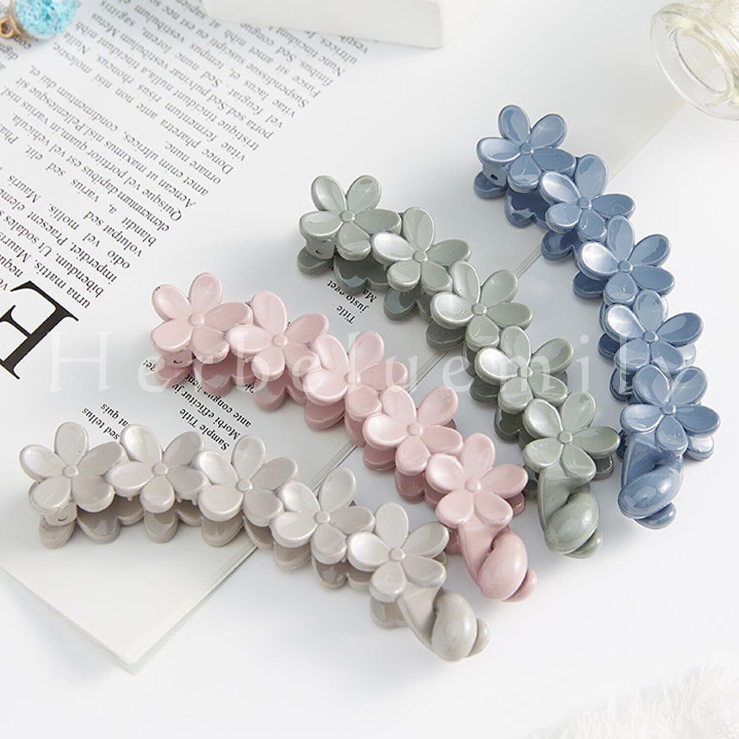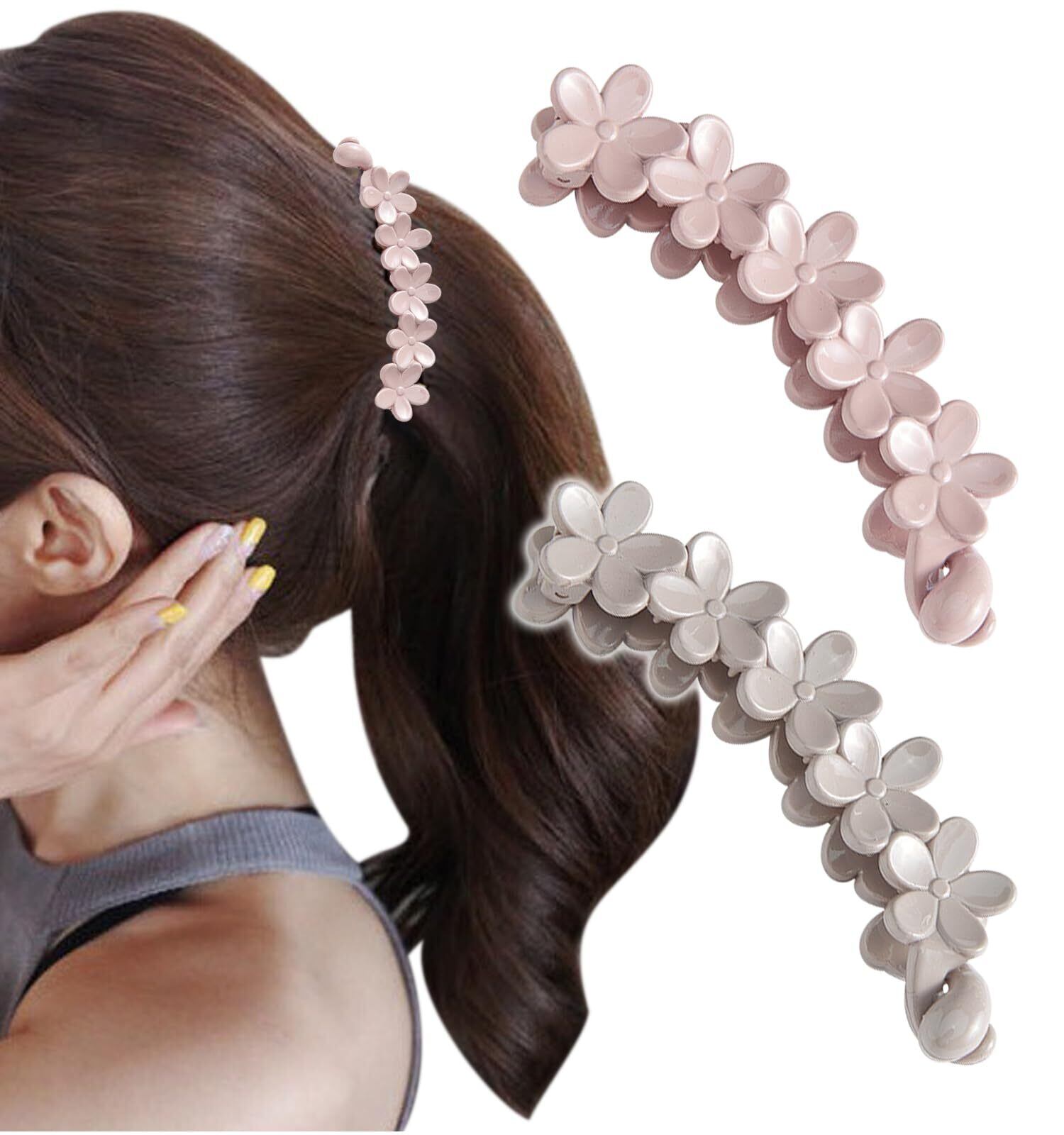[Herbeluemily] バナナクリップ 髪飾り ヘアクリップ バレッタ フラワー 髪留め くすみカラー セット A ピンク+ベージュ HM-0163-R03-A