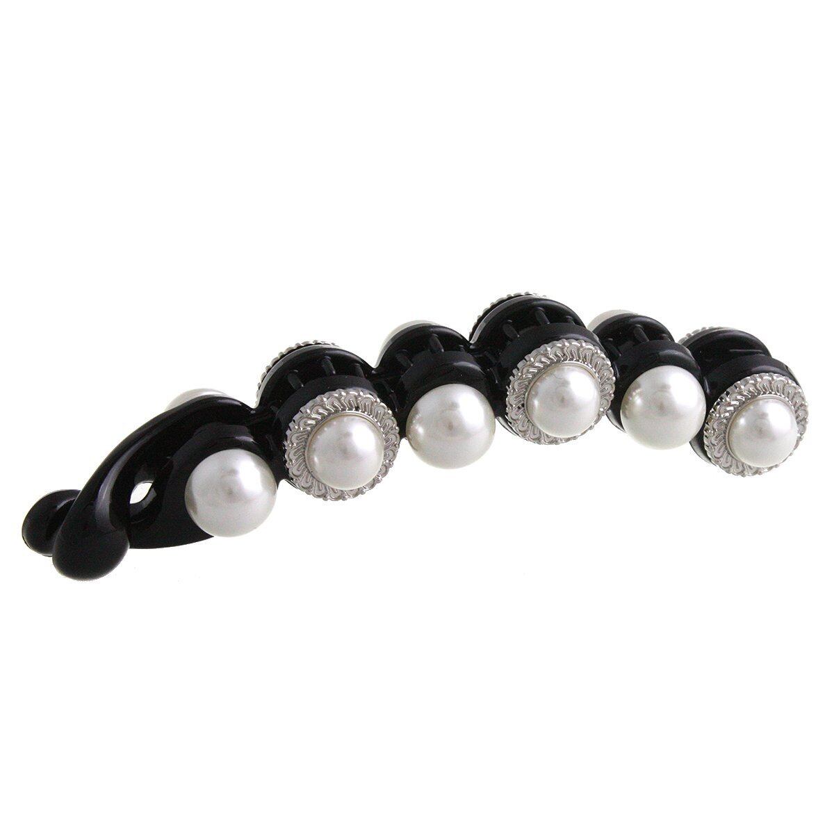 ヴァンテーヌ VINGTAINE パール サークル ラインバナナクリップ クラシカル シンプル ヘアクリップ ヘアアクセサリー シルバー H7058-S-