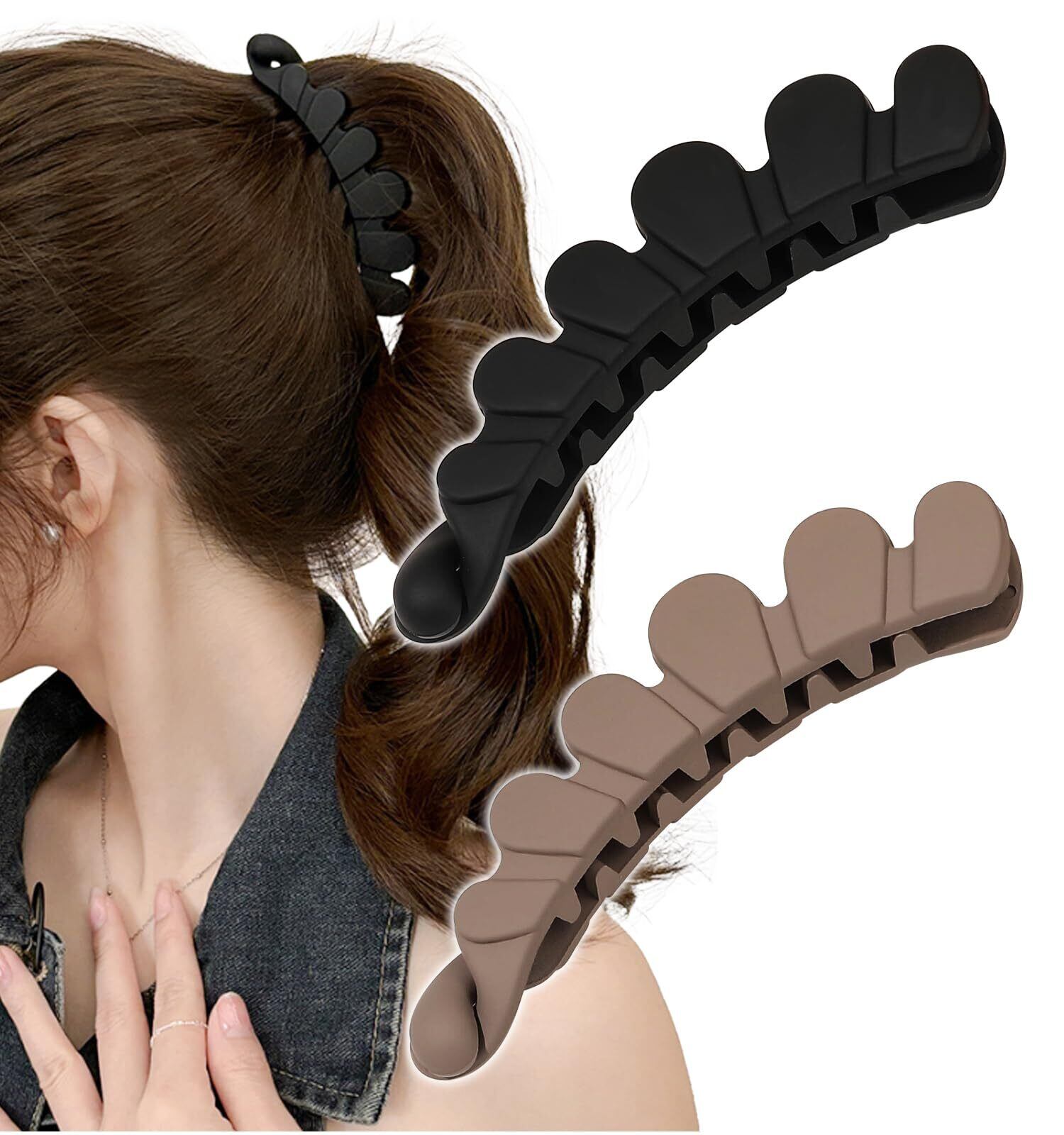 [Herbeluemily] バナナクリップ ヘアクリップ しっかり 髪留め シンプル おしゃれ 花びら 2個セット A ブラック+ブラウン HM-0105-R02-A