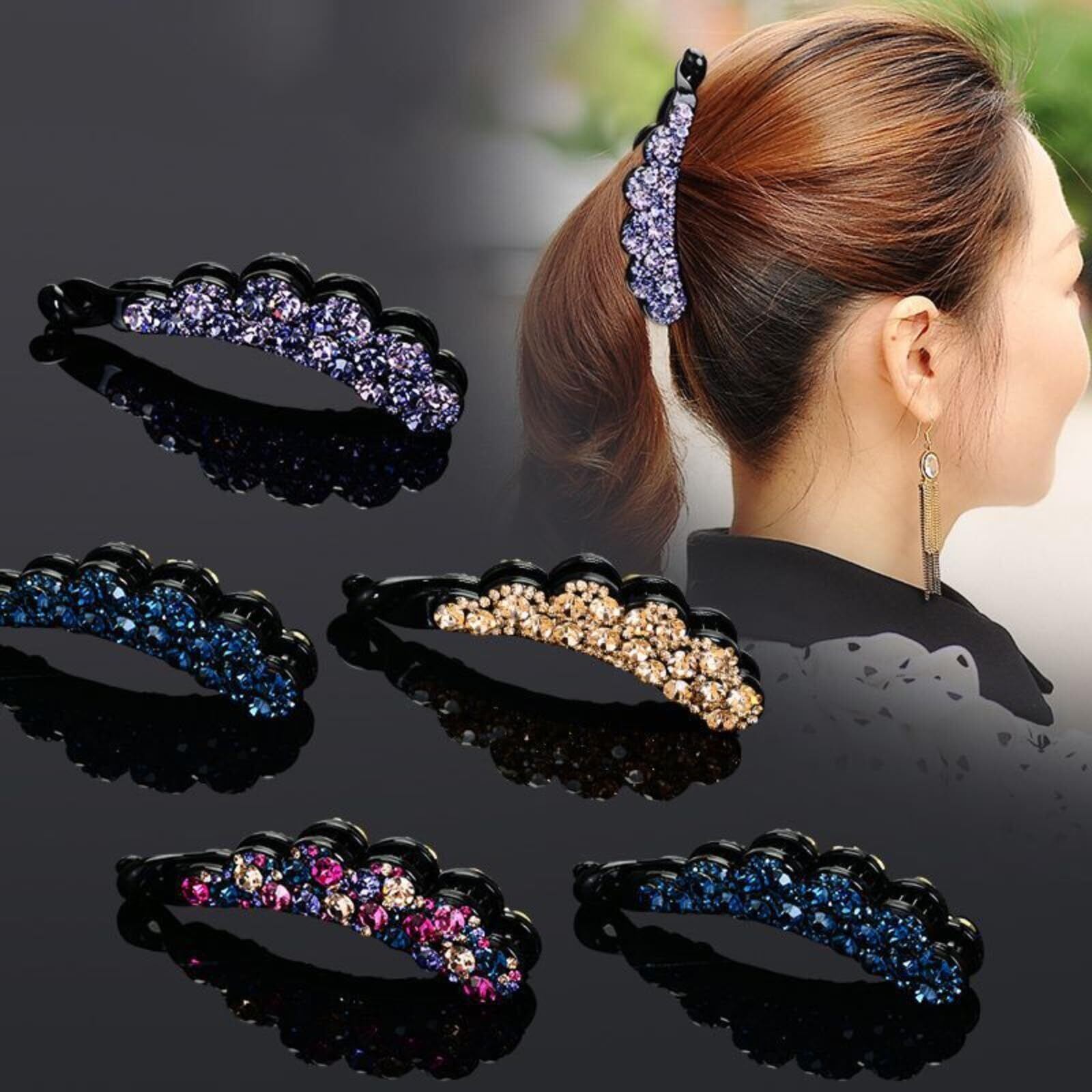 キラキラとシックな輝きを放つジュエルドロップが程よく上品で大人可愛いバナナクリップ。ヘアアレンジにお困りの方でも素早く楽にまとめ髪が完成!プレゼント,母の日等、ギフトとしてもご利用頂けます。