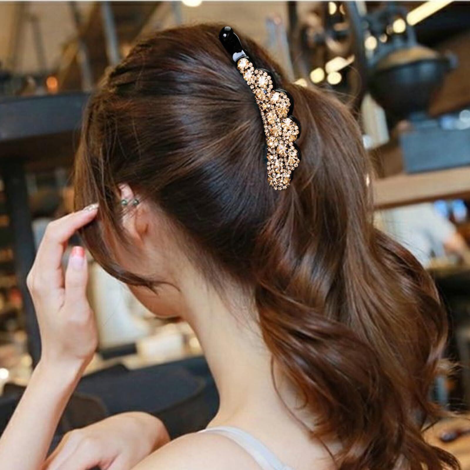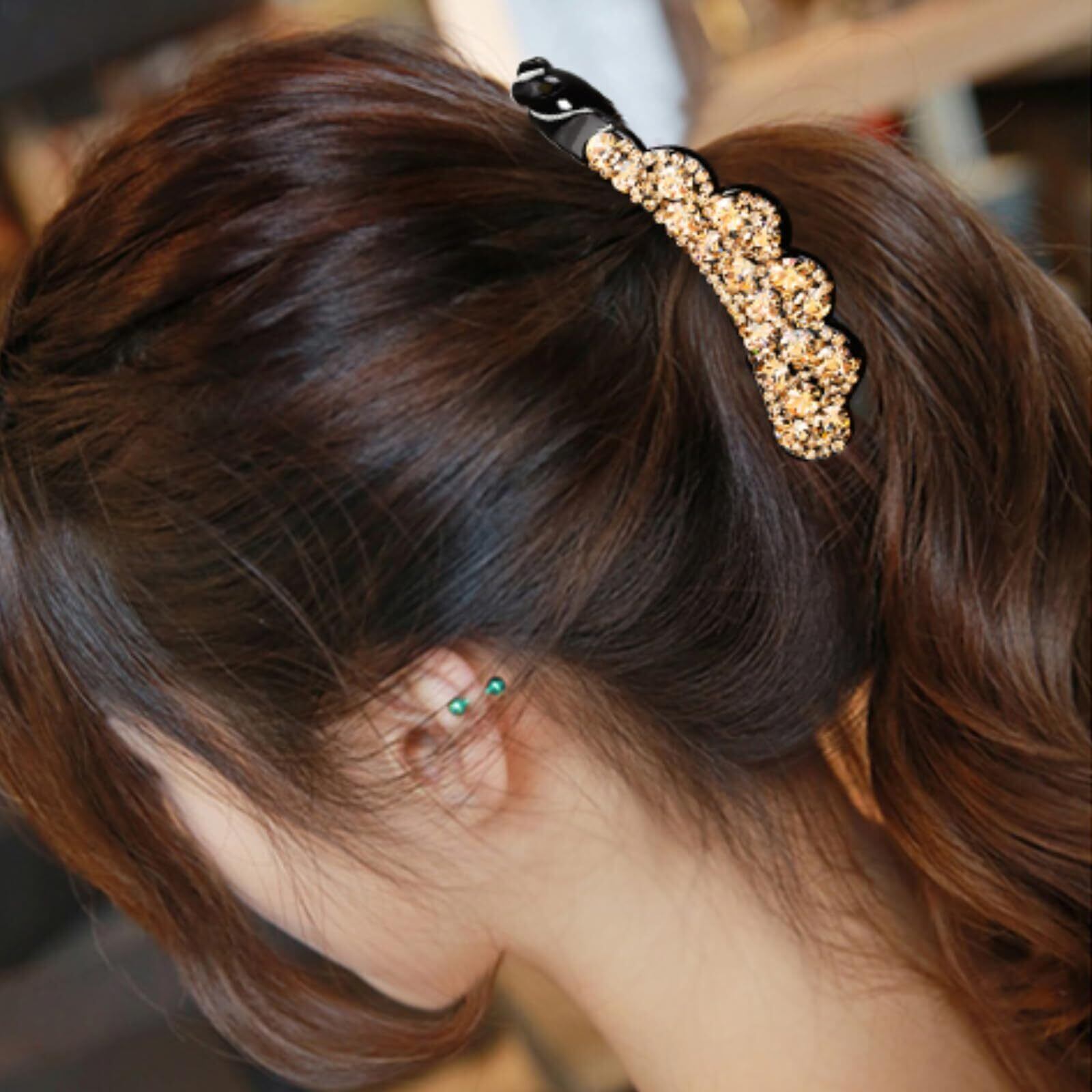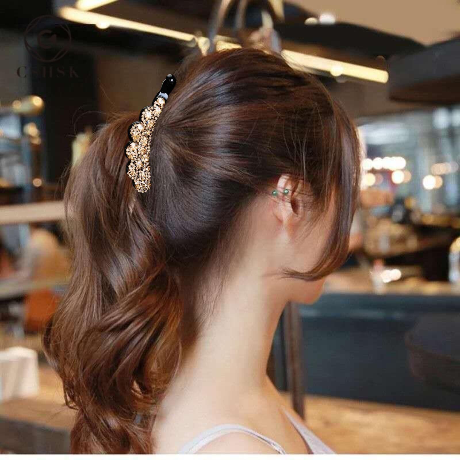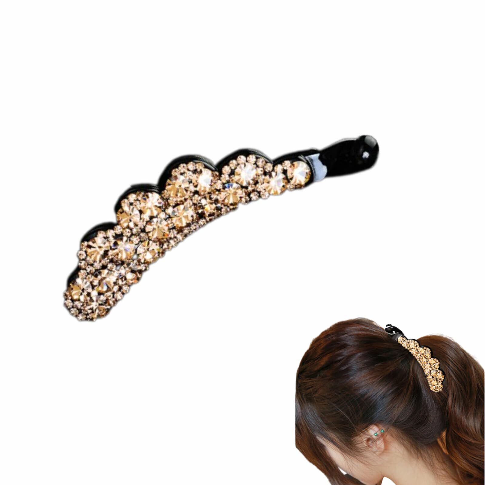 バナナクリップ 簡単ヘ キラキラと輝 大きめ ヘアクリップ 大 シンプル ヘアアクセサリー 髪留め 髪飾り 大人 上品 ヘアアクセサリー (Gold)