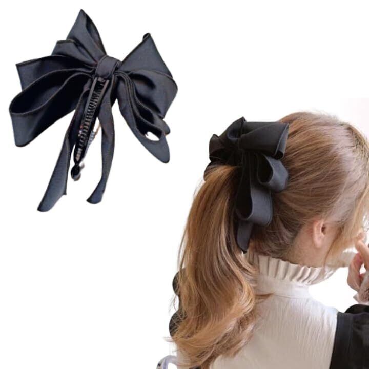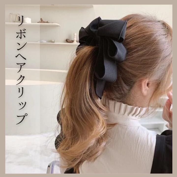 髪飾り ヘアアクセサリー バナナクリップ ヘアクリップ リボン 大きめ まとまる ブラック 大人可愛い シニヨン ヘアアレンジ グッズ 入学式 入園式 卒業式 卒園式 Naty’s&Life