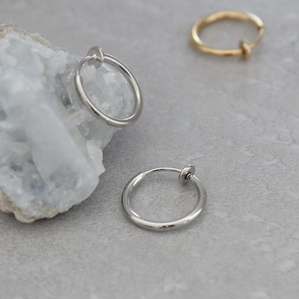 ピアスホールが無い方におすすめのシンプルデザインのフープイヤリングです。 デイリーコ-デにも気軽に合わせやすいので、耳元との馴染みも抜群。