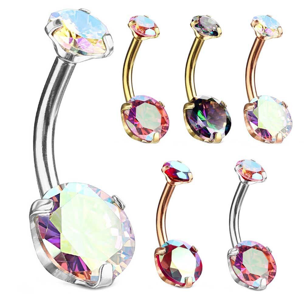 キラキラ光るラウンドジュエルが可愛いヘソピアス。 シンプルな形でどんなファッションにも合わせやすいのも魅力。 普段使いはもちろん、オフィスでもさり気なくオシャレを楽しめます。 使いやすい固定タイプで耳たぶにもOK。 カラーはオーロラ、ピンク、赤と4色からお選びいただけます。