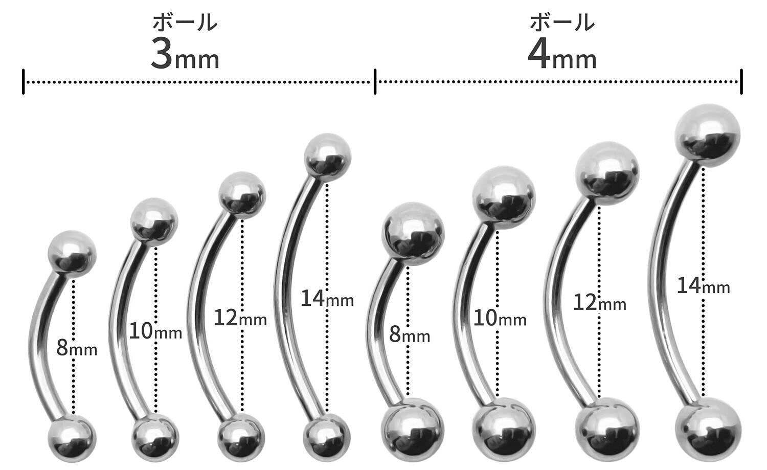 【サイズ】シャフト 1.2mm (16G)/ 内径 8 ~ 12mm (選択) / ボール 3 ~ 4mm (選択)