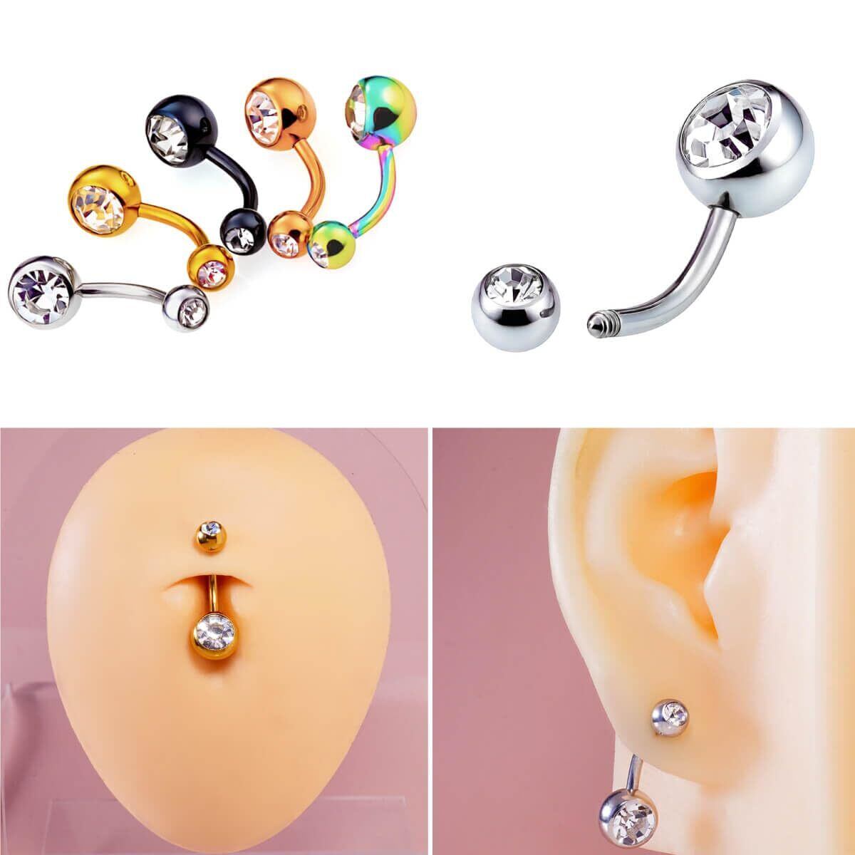 [From da Phactory] フロム ダ ファクトリー ダブルジェム バナナバーベル へそピアス 14G サージカルステンレス 軟骨ピアス ボディピアス キャッチおまけ付き