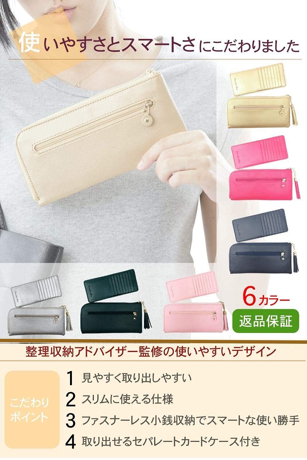 薄型にこだわりを持つ整理収納アドバイザーのスタッフ考案のL字型ファスナーの長財布です。 カード、小銭、レシート等。 膨らみがちなお財布もスマートに。 高級PUレザーにてお作りしました。 オリジナルの化粧箱にてお届けしますので気の利いたプレゼントにも メイン財布として、サブ財布としても使いやすく、柔らかな優しいイメージで。 その想いを形にいたしました。