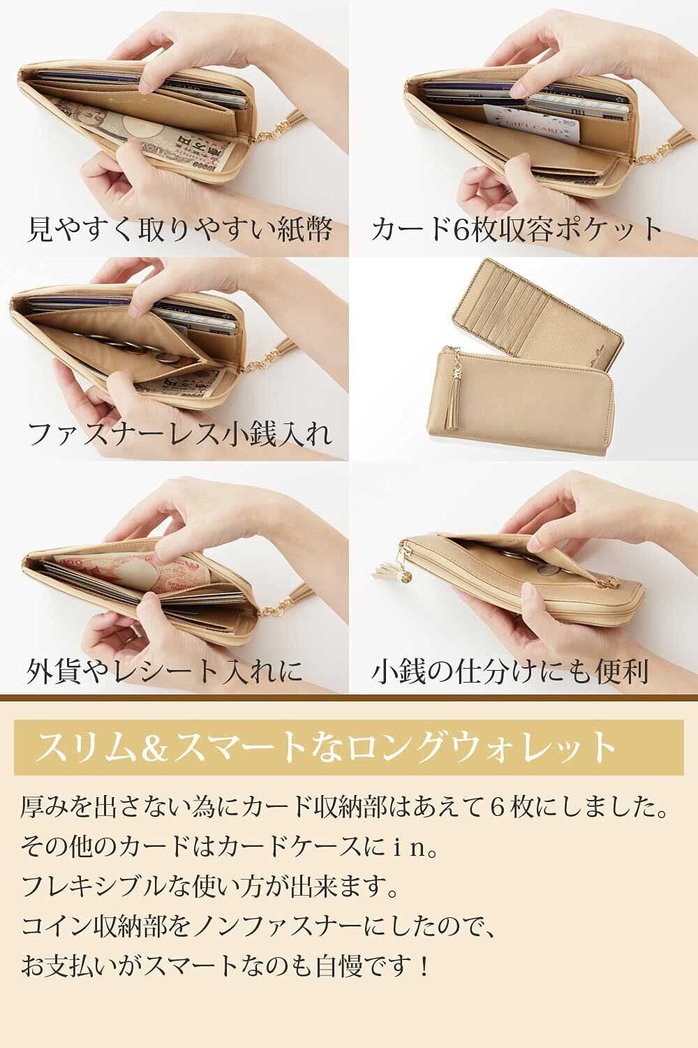 【特徴その2】 単独でも使えるカードケース付き。 これは自信を持っておススメできるお得感あるプラスポイントです。 かさばり、行方不明になりがちなカードも、このカードケースでスッキリ整理整頓 使い方はあなた次第です。 可愛らしいアクセントのタッセルチャーム付。 背面にはちょっと収納に便利なファスナー付ポケット。