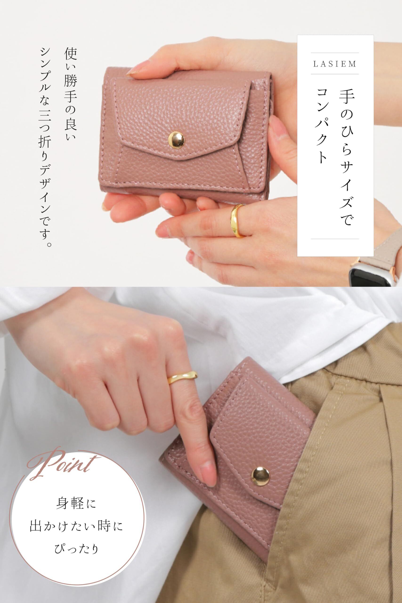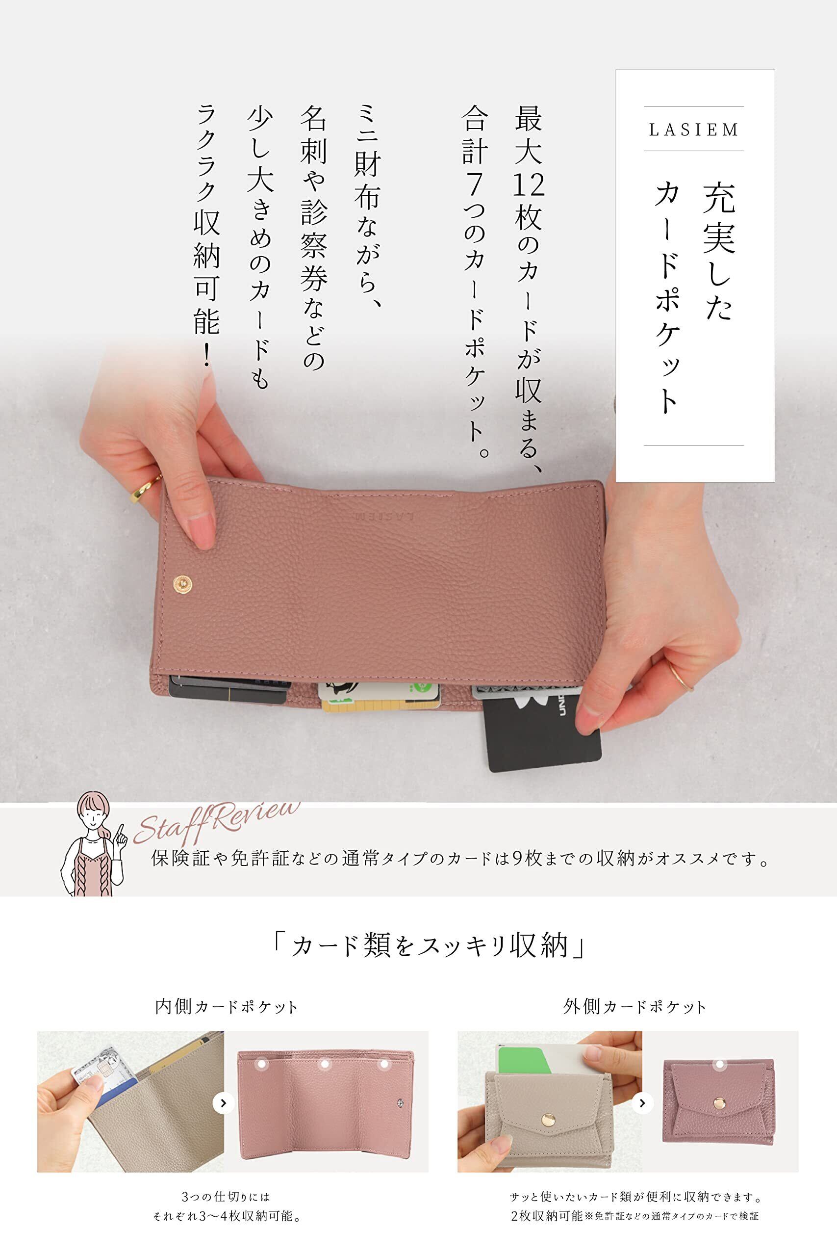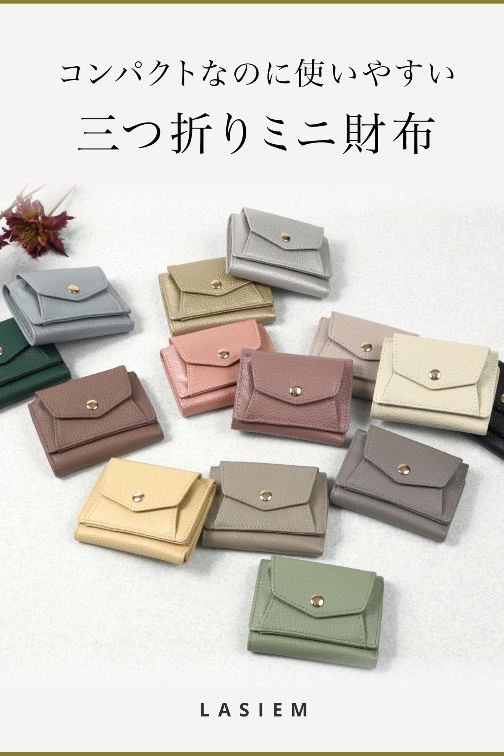 すべてのお悩み解決いたします!『小さいバッグやポーチにも収まるサイズがいい』 『落ち着きのある旬のカラーを取り入れたい』 『大きく開き見やすい小銭入れがいい』 『丈夫な素材・形状で長く愛用したい』そんなお悩み・ご要望にお答えするためミニ財布を開発しました。LASIEMのミニ財布は上質なクオリティで”小さいのに使いやすい”を実現いたしました。