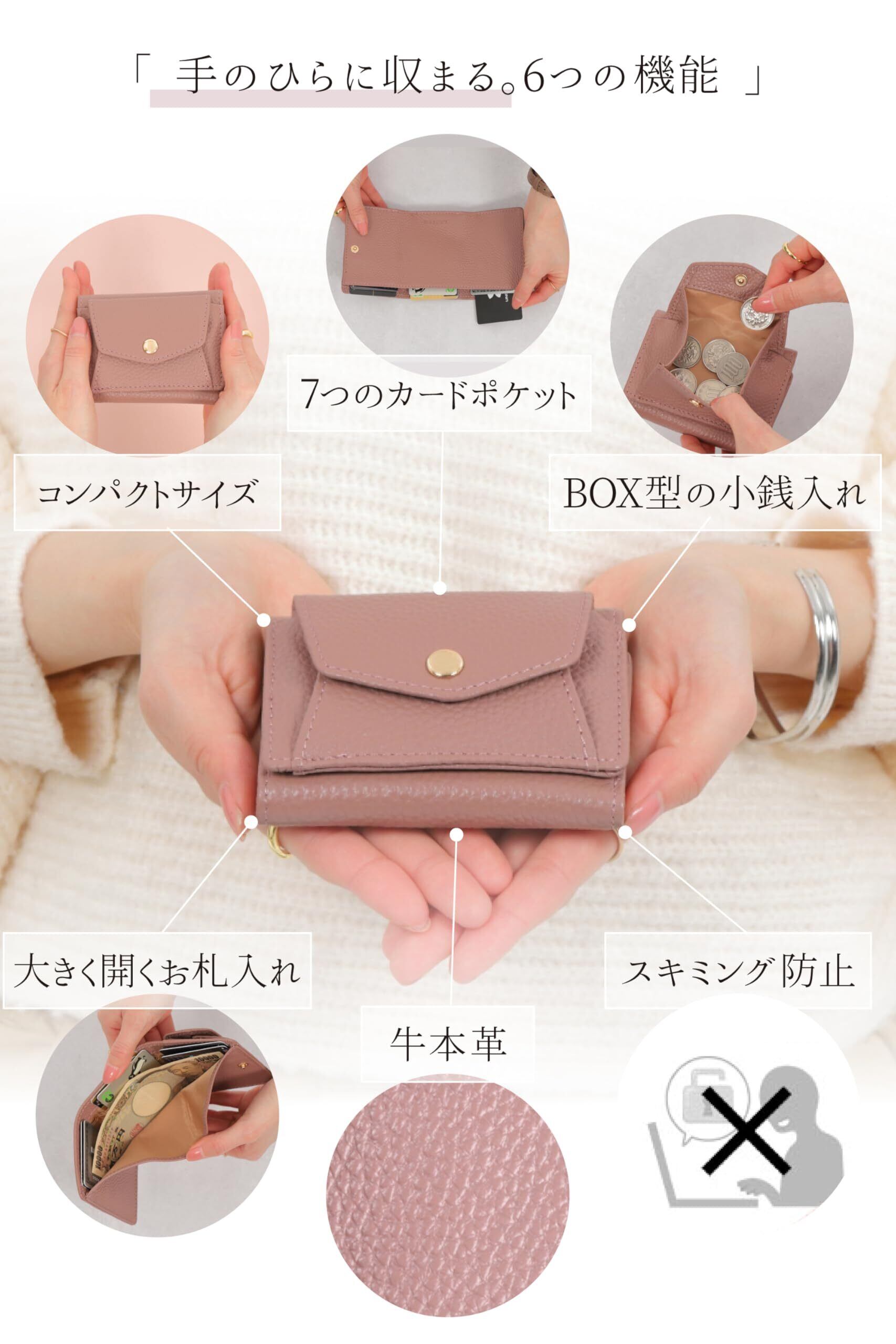 【充実したカードポケット】最大12枚のカードが収まる、合計7つのカードポケット。 ミニ財布ながら、名刺や診察券などの少し大きめのカードもラクラク収納可能!