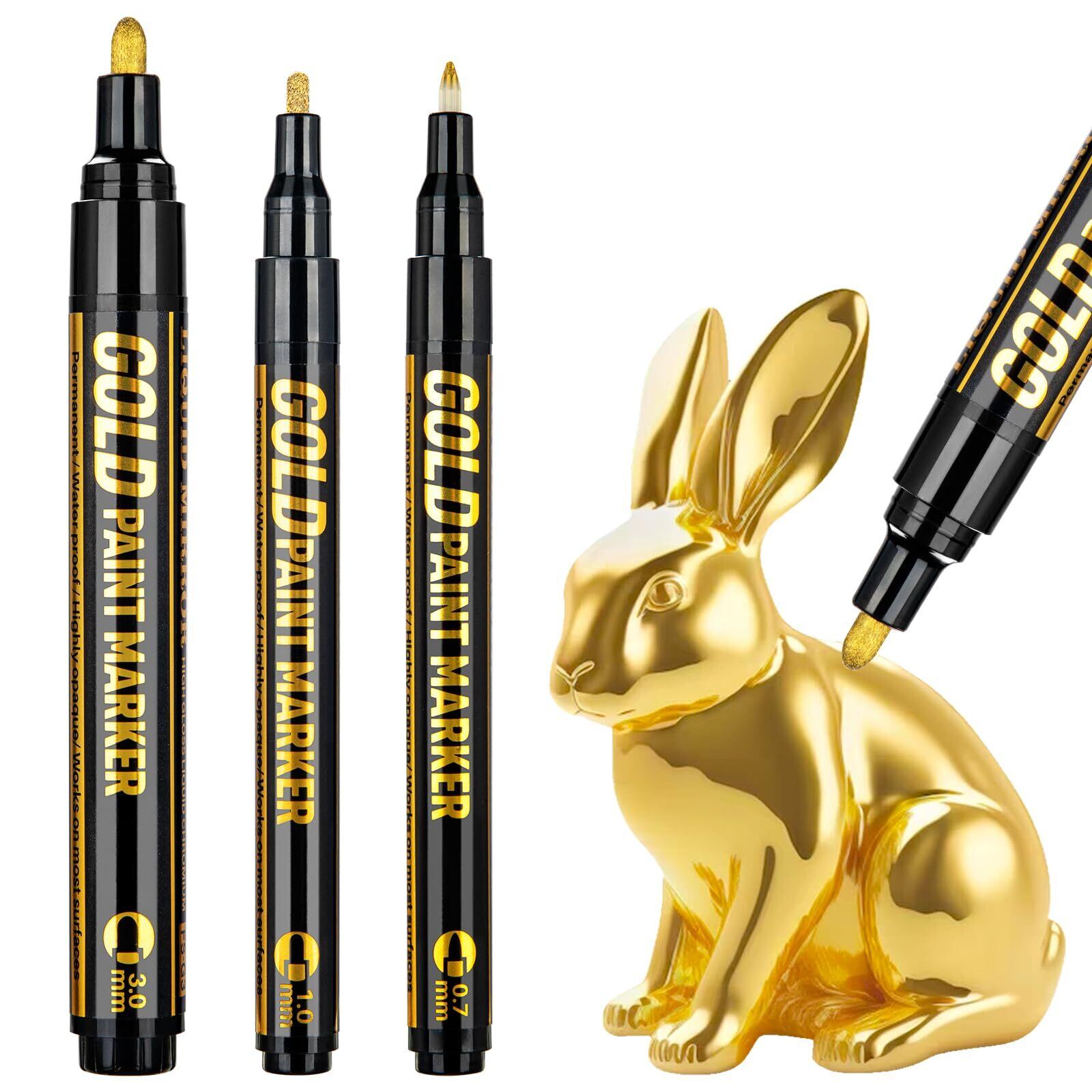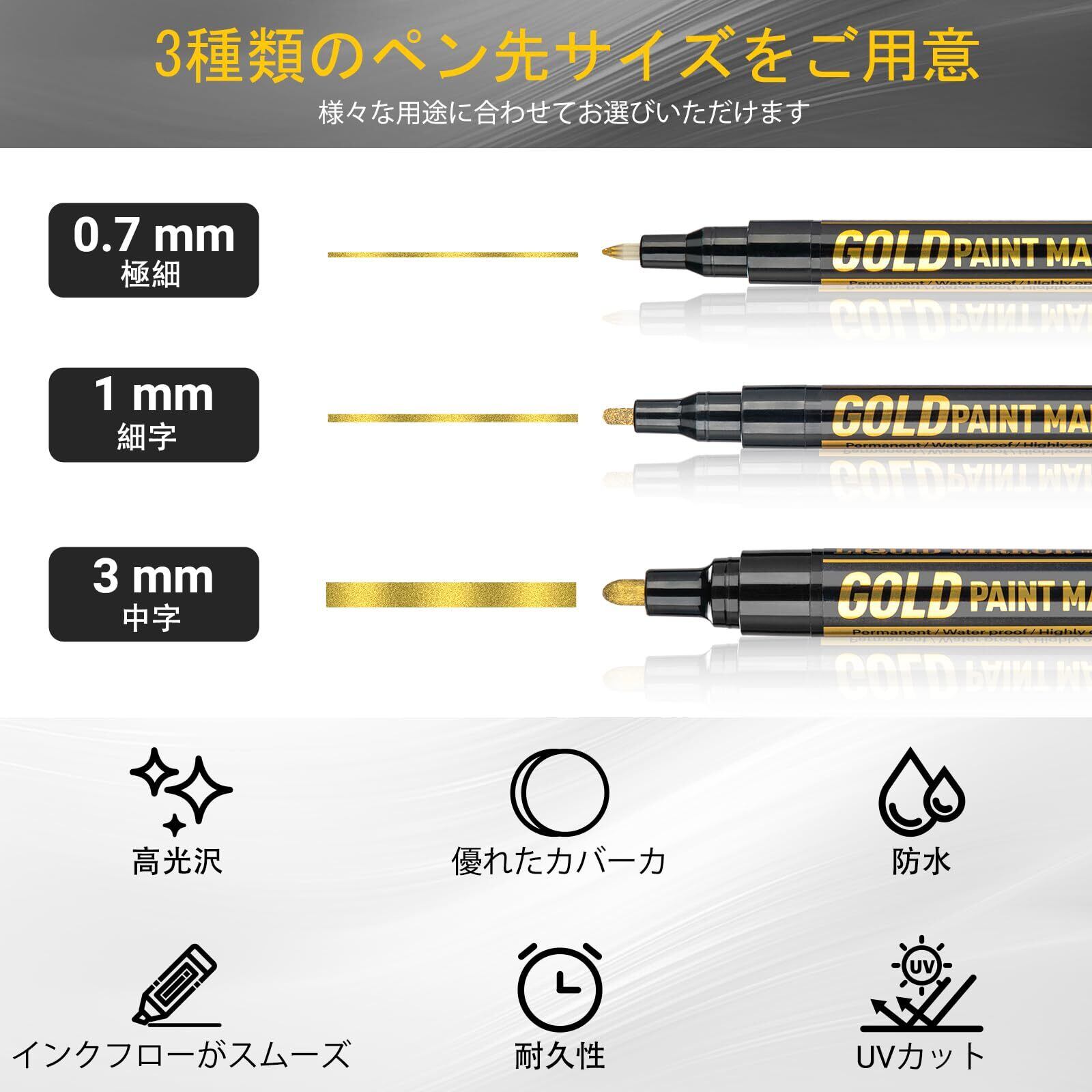 AKARUED 金メッキ 補修ペン メッキペン 3本セット 0.7mm/1mm/2mm メッキ メッキ剥がれ補修 鏡面効果 強光沢 防水 模型/金属/ガラス対応 DIYクラフト用