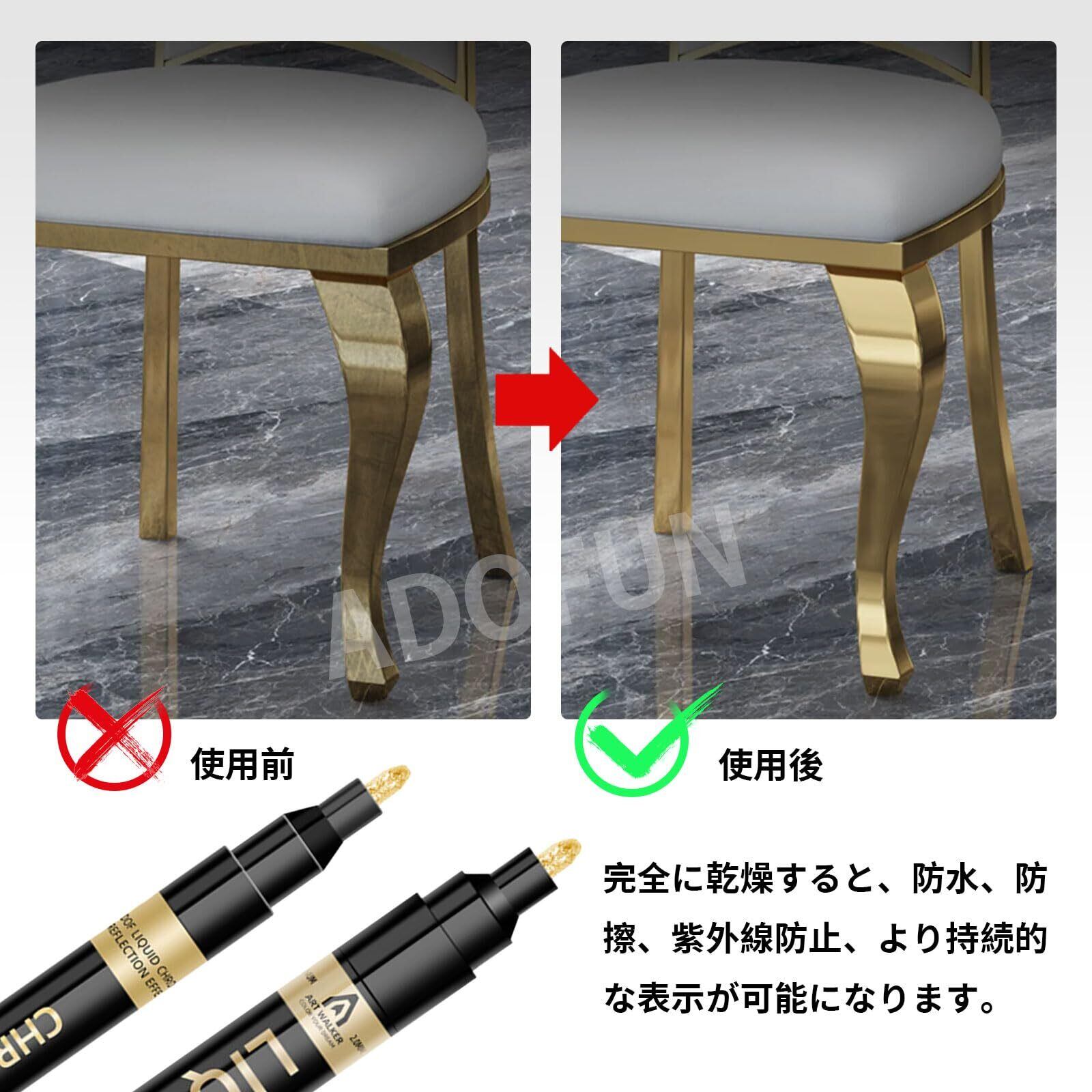 ミラークロム効果:金メッキ 補修ペンはミラー効果、耐久性と滑らかさ、滑らかな表面、反射と光沢があり,使用時に手作りのDIYアートワークに非常に適しています。