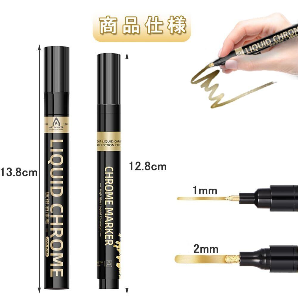 金メッキ 補修ペン ゴールドマーカーペン 2個セット DIY用品 塗るだけでメッキ 高光沢液体クロムペイントマーカー 長持ちする色 防水反射光沢メタリック 布 セラミック ガラス 木材 金属用 (ゴールド 1mm+2mm)