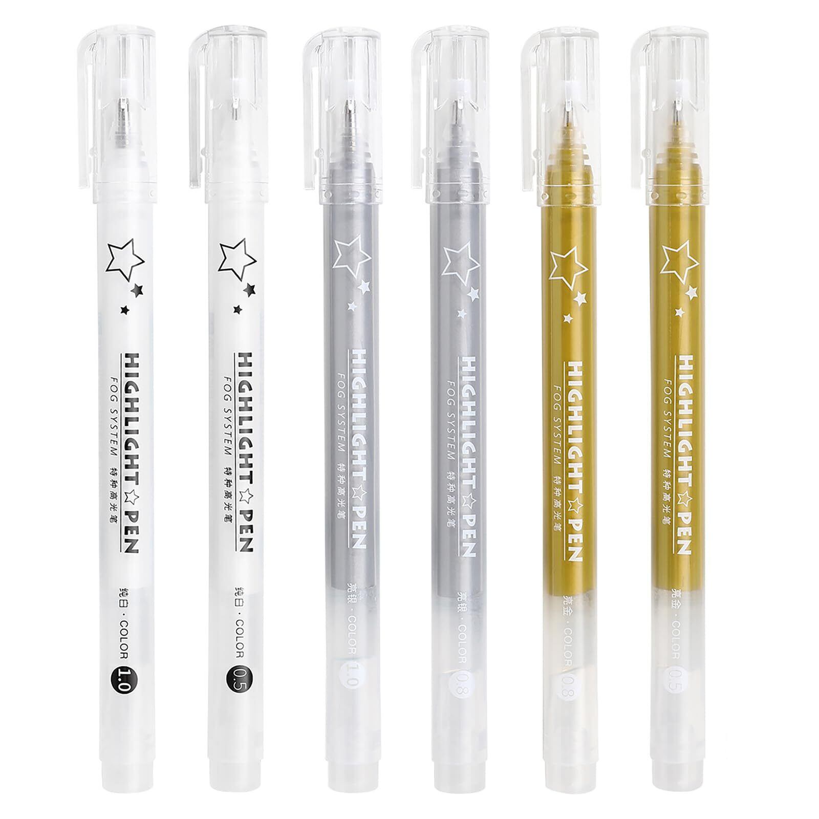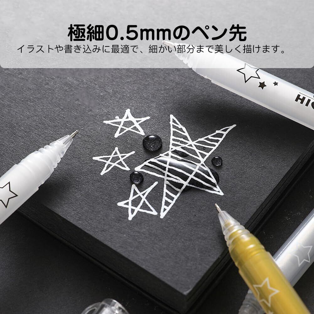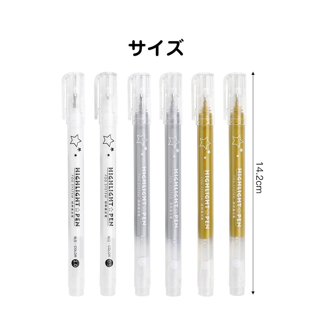 ジェルボールペン 0.5mm 極細 不透明 ゴールドペン 6本セット イラスト 手帳 手紙 手書きPOP ノート 挨拶状 アルバム用 黒い紙にも書ける 耐水 耐光 白 金 銀 (3色セット)