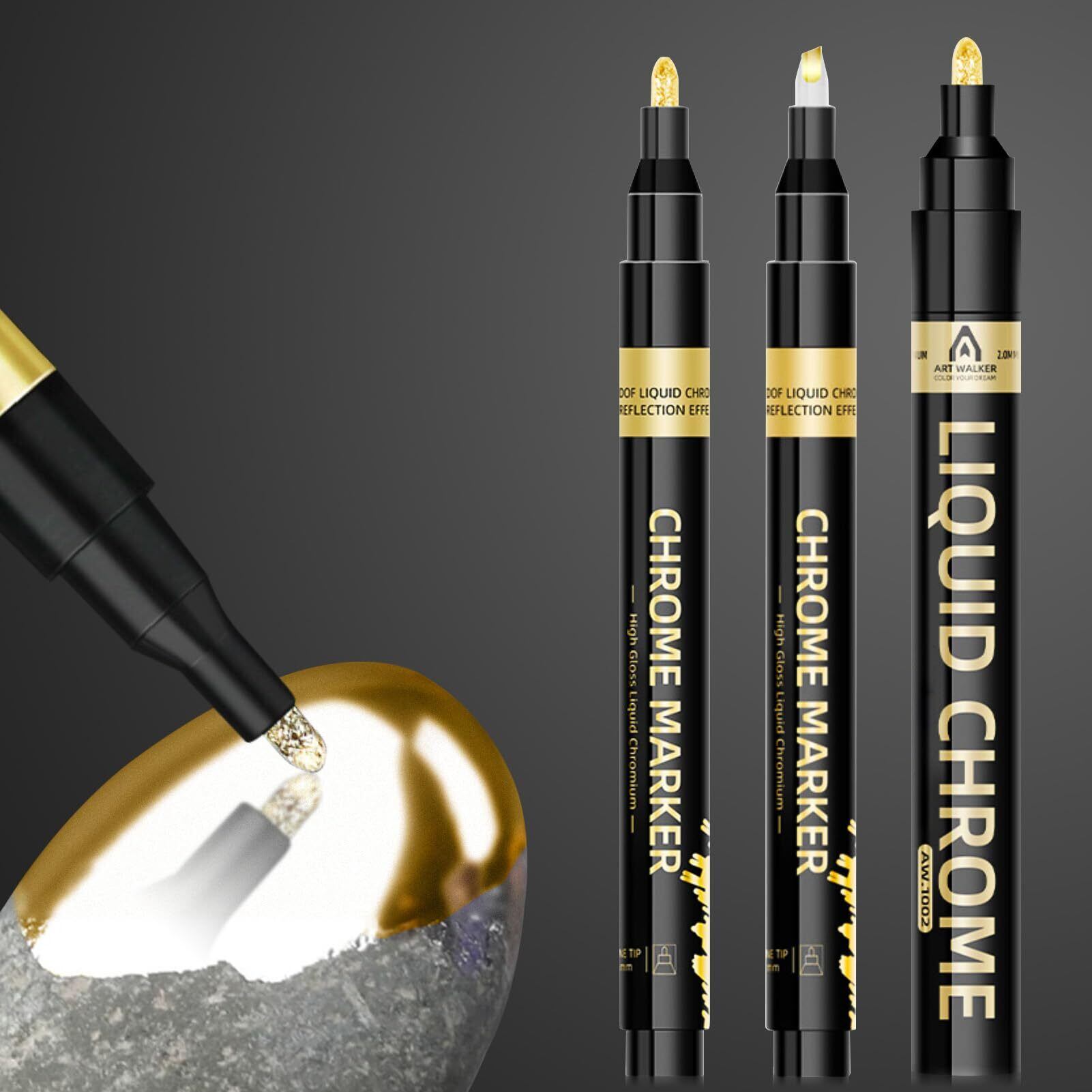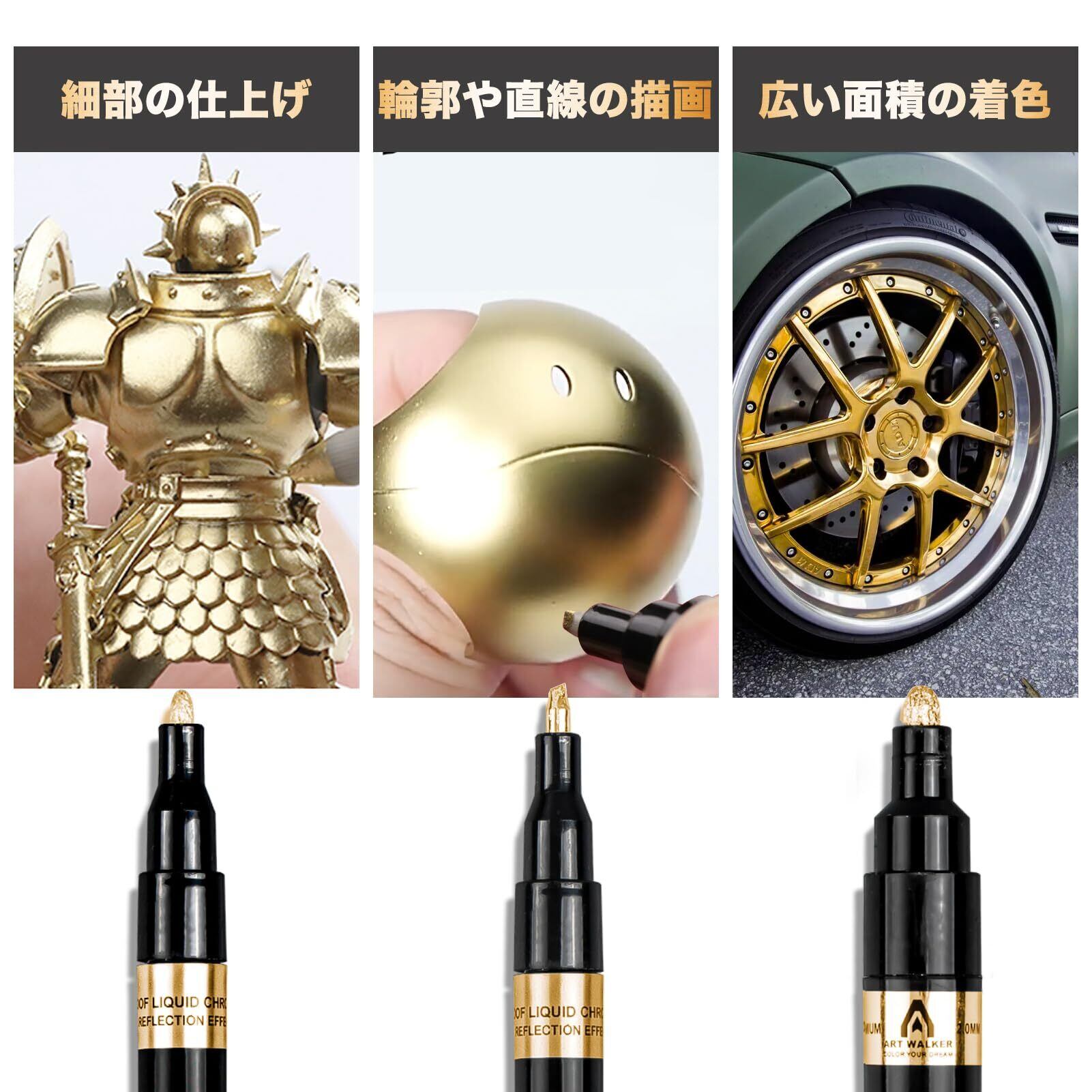 金メッキ 補修ペン ゴールド メッキ塗料 塗るだけでメッキ 2.0mm 太/1.0mm 細/0.7mm チゼル 3本セット 強い光沢感 メタリック 防水 耐摩耗 鏡面効果 車 プラモデル 模型 補修用