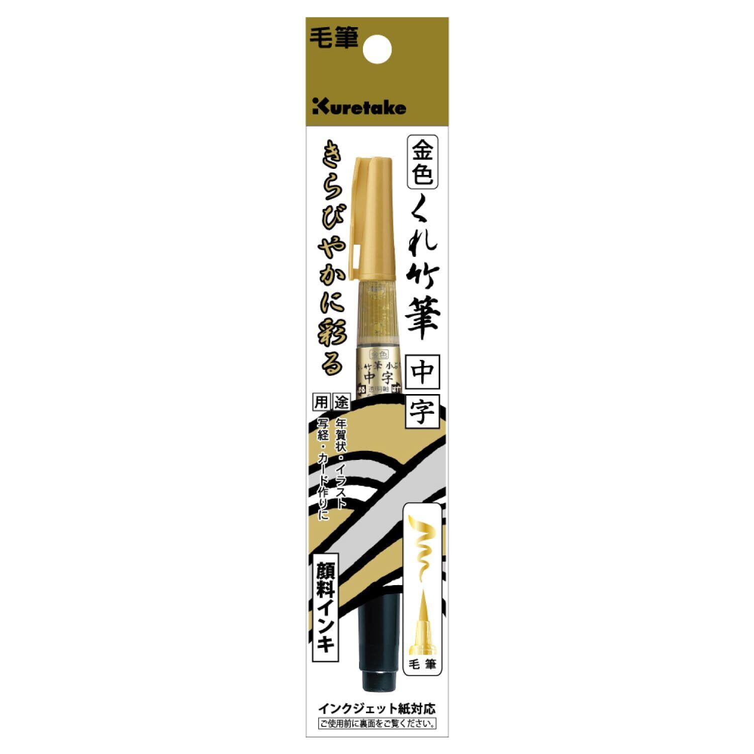 呉竹 筆ペン くれ竹筆 小ぶり 中字 金色 DGS160-101S