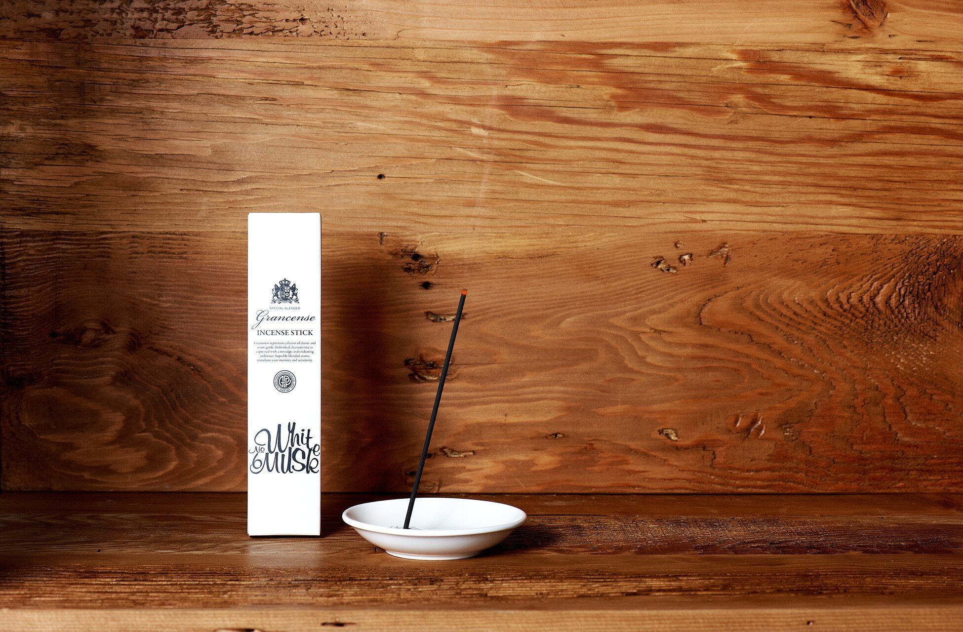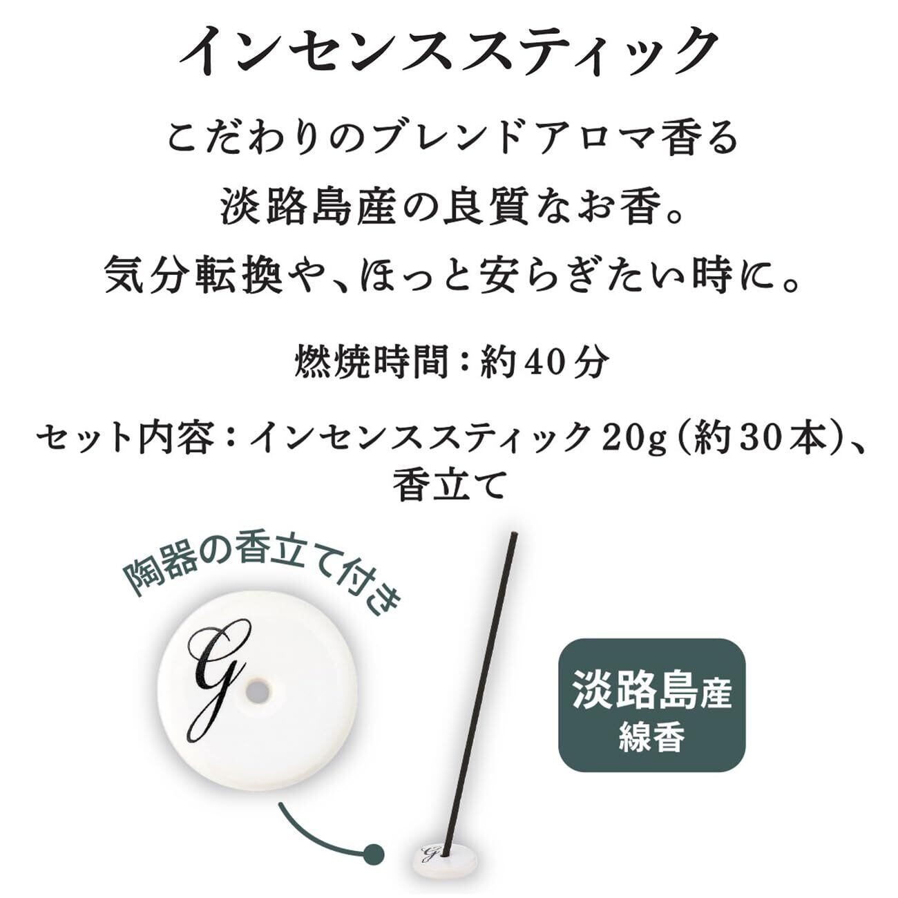 グランセンス インセンススティック ホワイトムスク 20g (約30本)(お香 香立て付 淡路島産 日本製 空気浄化 アロマ ベルガモットとミントの透明感ある香り)
