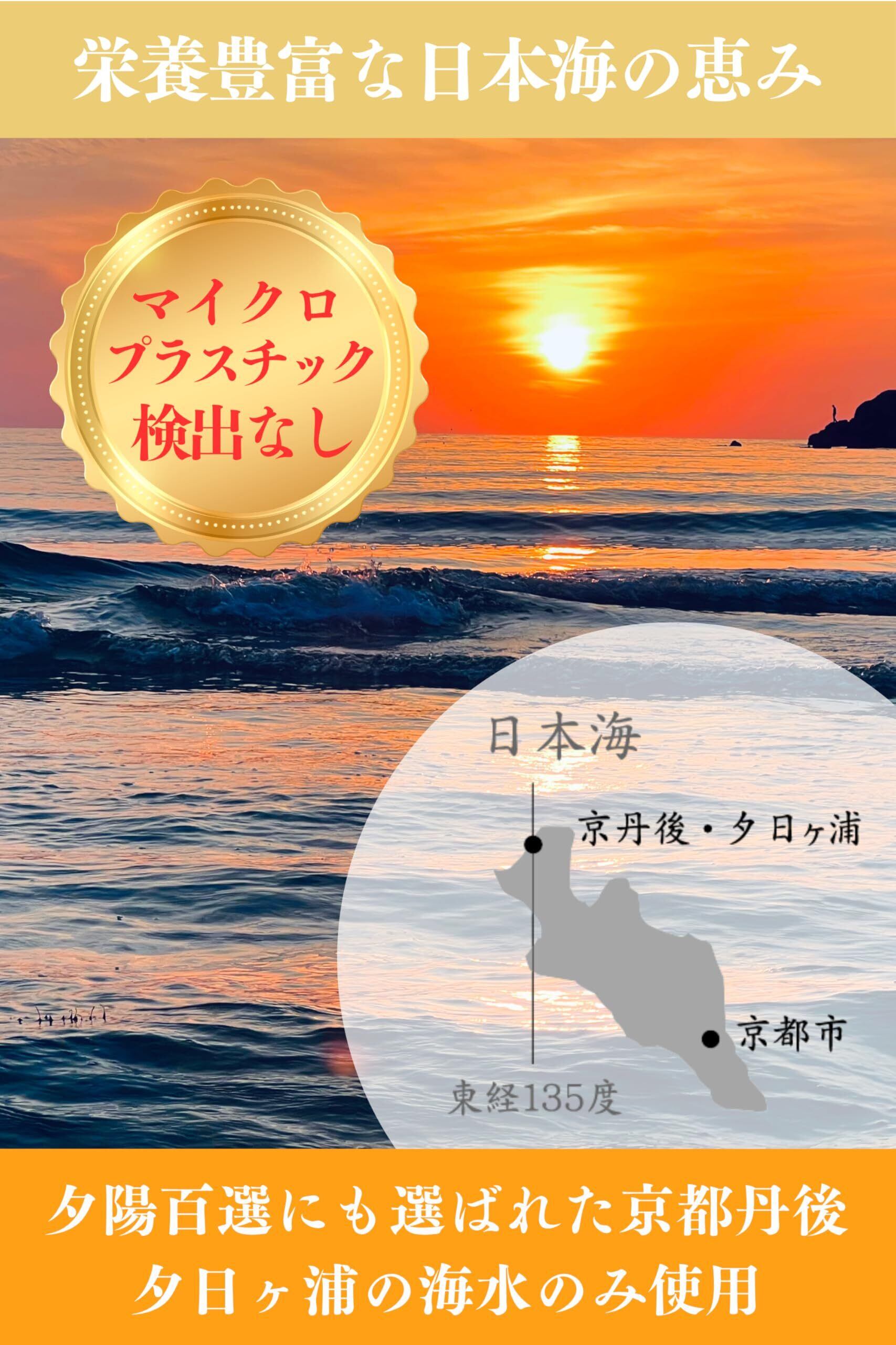 【旨みたっぷりの天然塩】日本の夕陽百選に選ばれた京丹後市・夕日ヶ浦の海水から生まれた、天然塩。豊かな日本海の恵みを凝縮したこの自然塩(海塩・海水塩)は、一般的な食塩に比べて旨みたっぷり。減塩にもぴったりです。製法にもこだわり、不純物を丁寧に取り除いた純粋な天然塩。さらに、専門機関によるマイクロプラスチックの含有検査を行い、検出されていない確かな品質の塩。毎日の食卓に、自然の栄養とおいしさをお届けします。