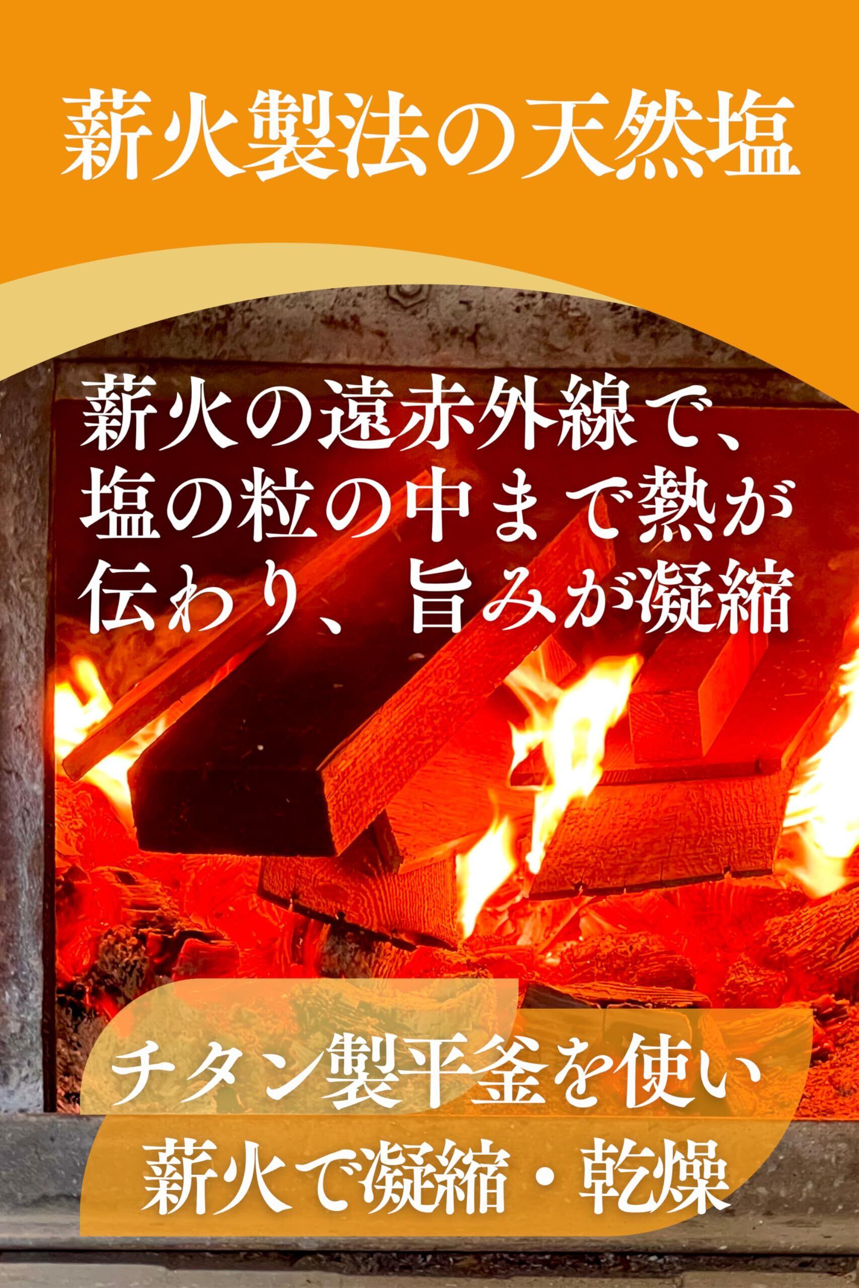【職人手作りの自然塩】こだわりの平釜製法で作られる天然の塩( しお )は、海水2,500ℓから僅か60kg程しか作られない海塩です! 丹後・夕日ヶ浦から汲んできた海水を平釜で1週間かけて薪で炊き上げています。特注のチタン製平釜を使い、煮詰めていく中で灰汁となって出てくる不純物や、サラサラに仕上げるために釜のそこに溜まっている石灰を丁寧に取り除いた独自の製法の天然塩(海水塩)です。