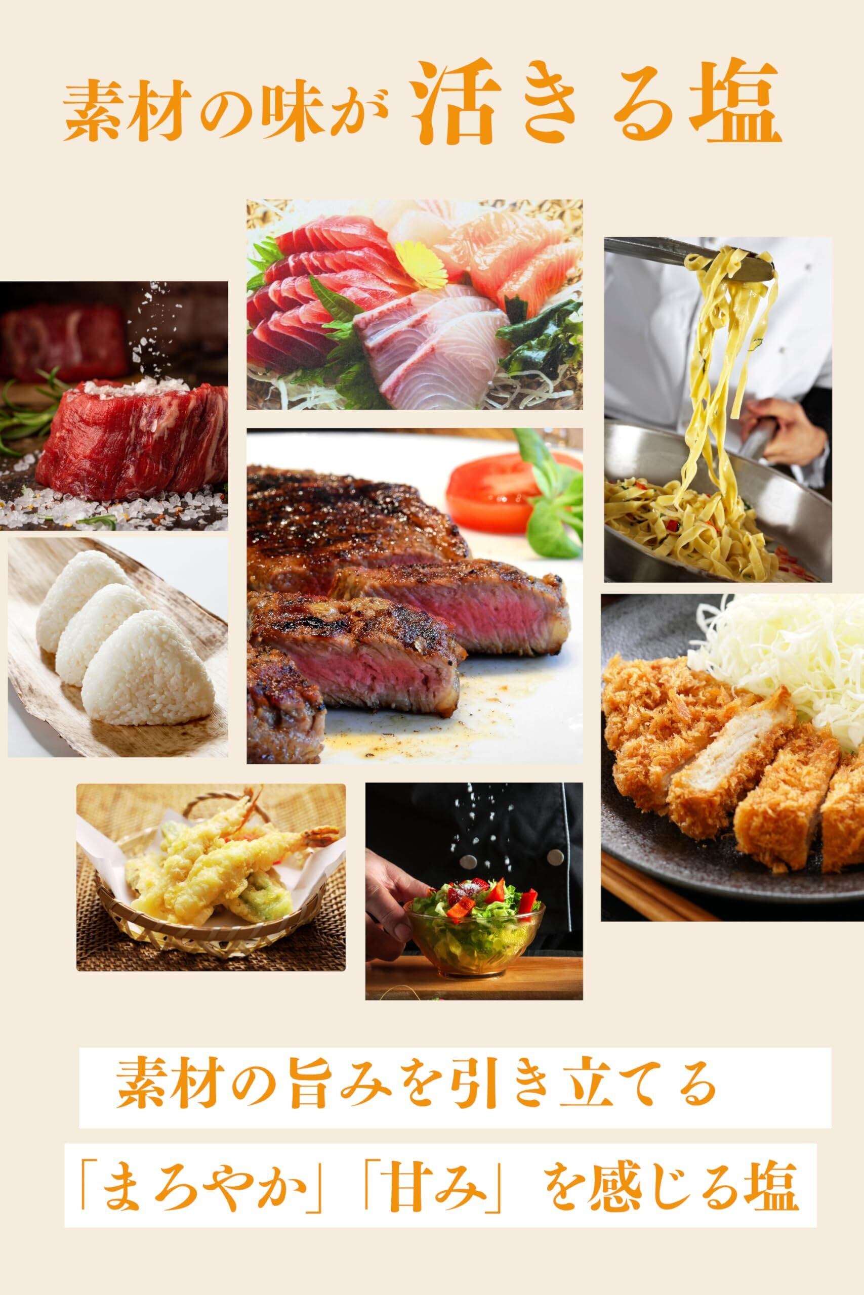 【毎日の食卓を美味しく健康に!】丹後絹塩は毎日の料理に活用できるサラサラとした天然塩です。和食だけでなく洋食や中華など、さまざまな料理に食塩の代わりとしてお使い頂けます。 ミネラルの多い塩なので、例えば、焼き魚、ステーキやパスタに使うことで素材の旨味を引き立て、より贅沢な味わいを楽しむことが出来る天然の塩(しお)。ぜひ、あなたの料理に丹後絹塩を使って健康的でワンランクアップした美味しさを体験してみてください。