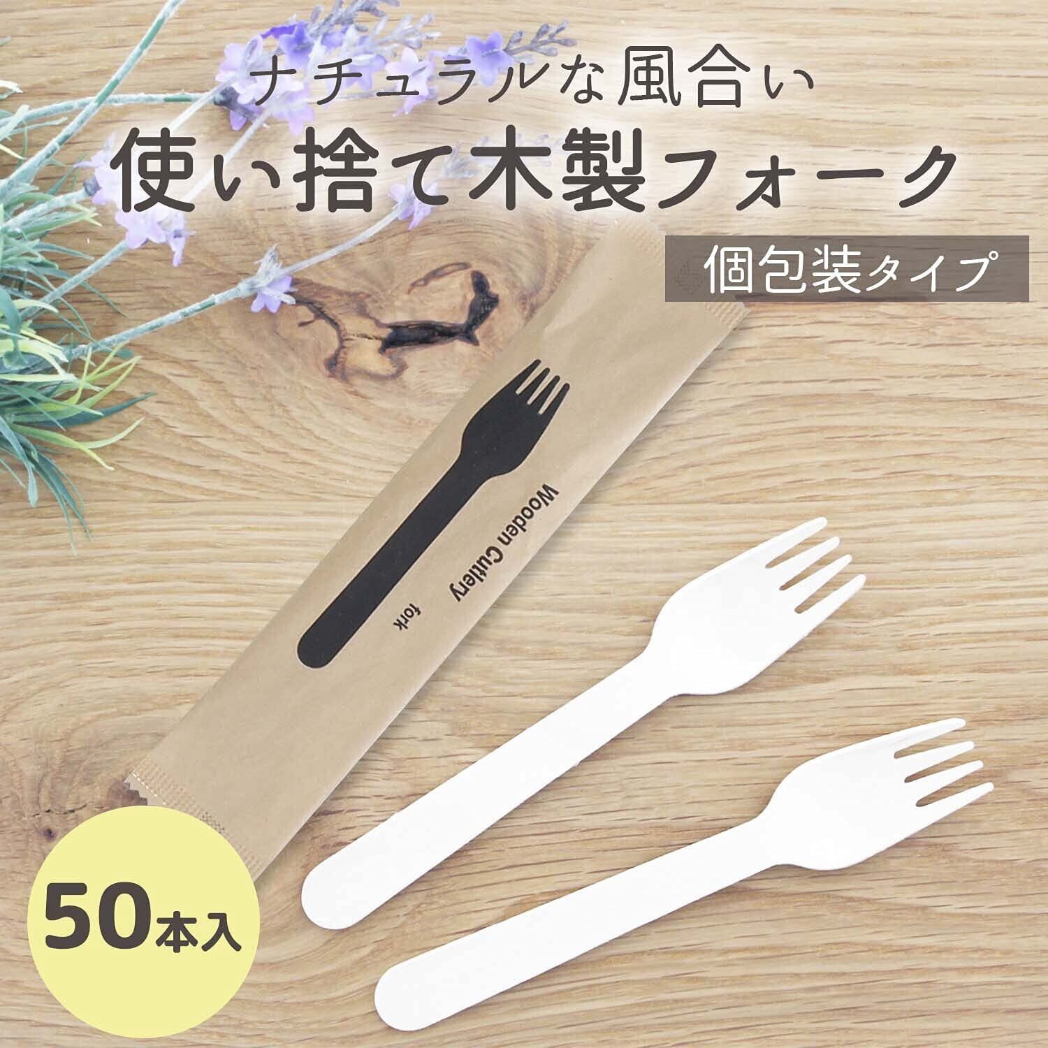 中村 使い捨てフォーク 木製 個包装 未晒紙 ナチュラル 約160mm 50本入