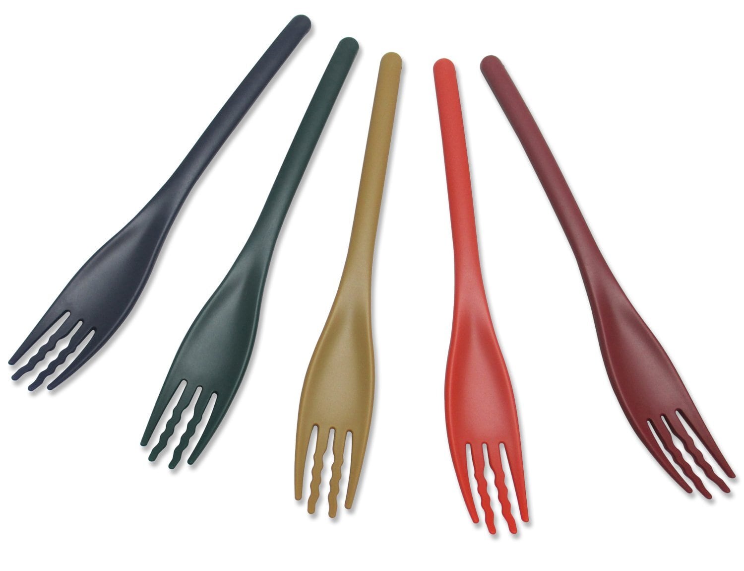 熱くなりにくい樹脂製。お口に運んだ時の口当たりも優しいフォークです。