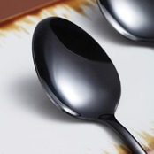 【デザイン】:シンプルなデザイン、掬いやすく、口に運びやすい形状、程よいサイズ、普段に大活躍できるスプーンフォークセット。黒色のカトラリーは他の食器との相性がよく、食卓のテンションが上がります。