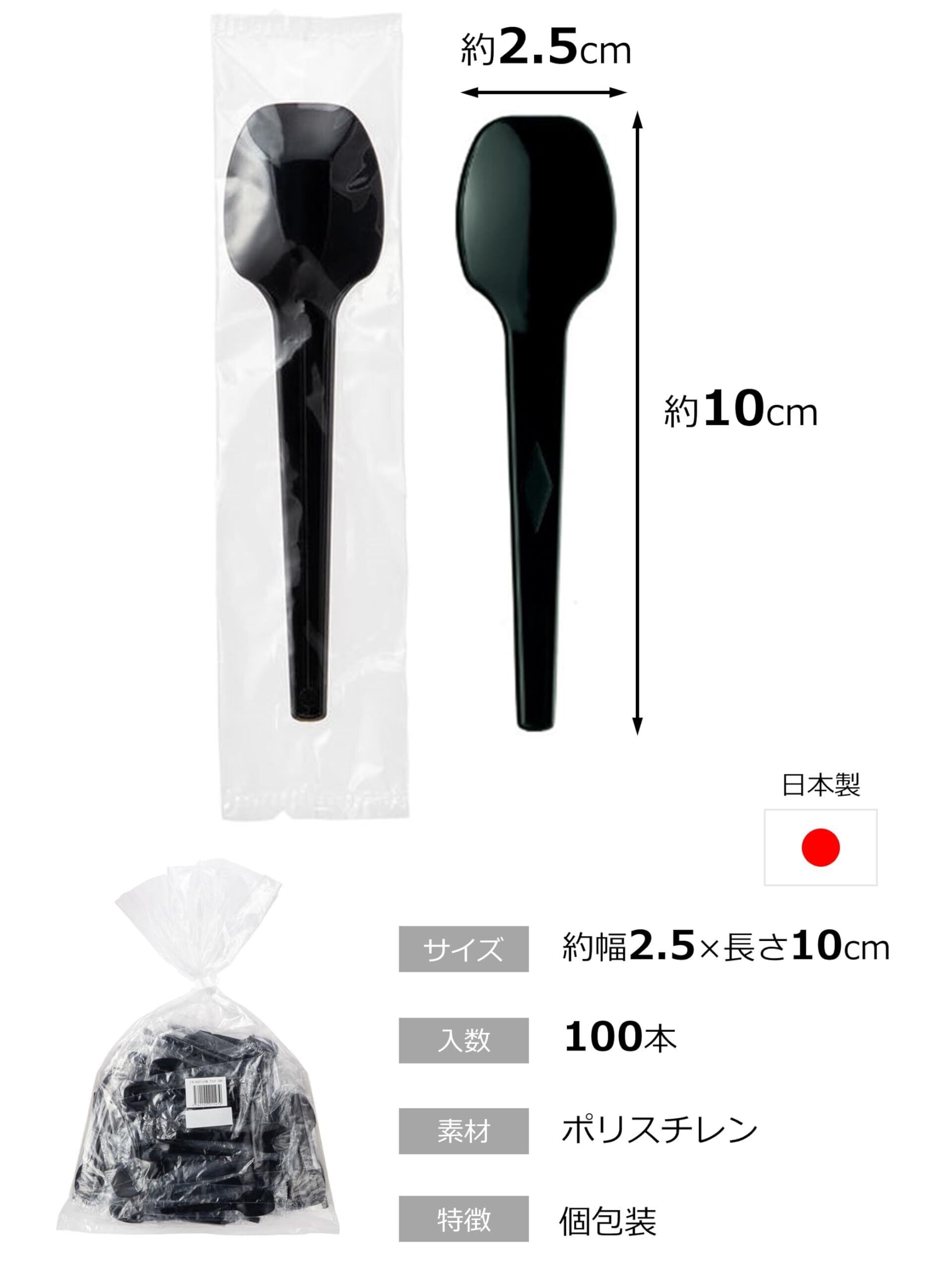 ストリックスデザイン 使い捨て ミニスプーン 日本製 業務用 100本 10cm ブラック 個包装 試食 デザート TS-420A