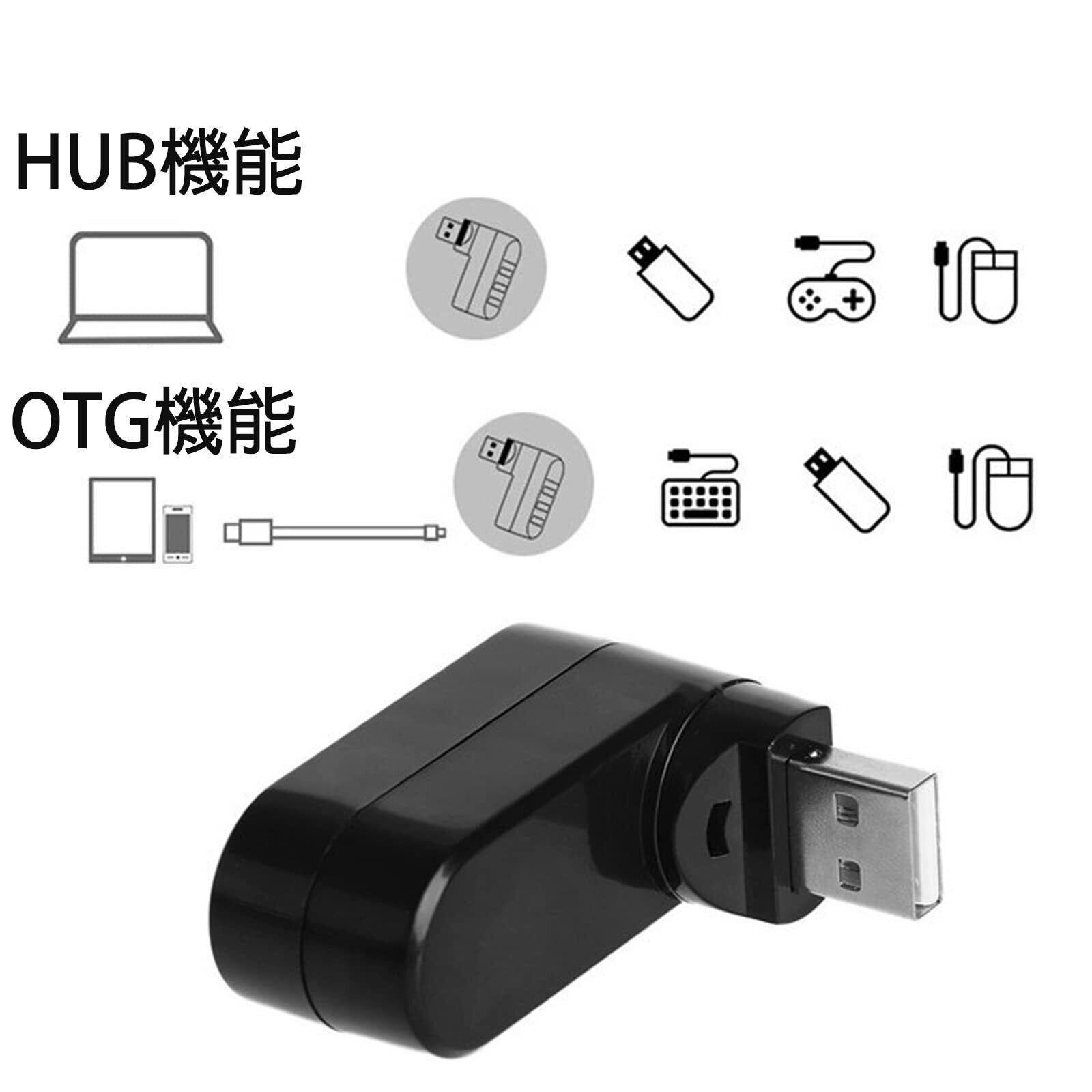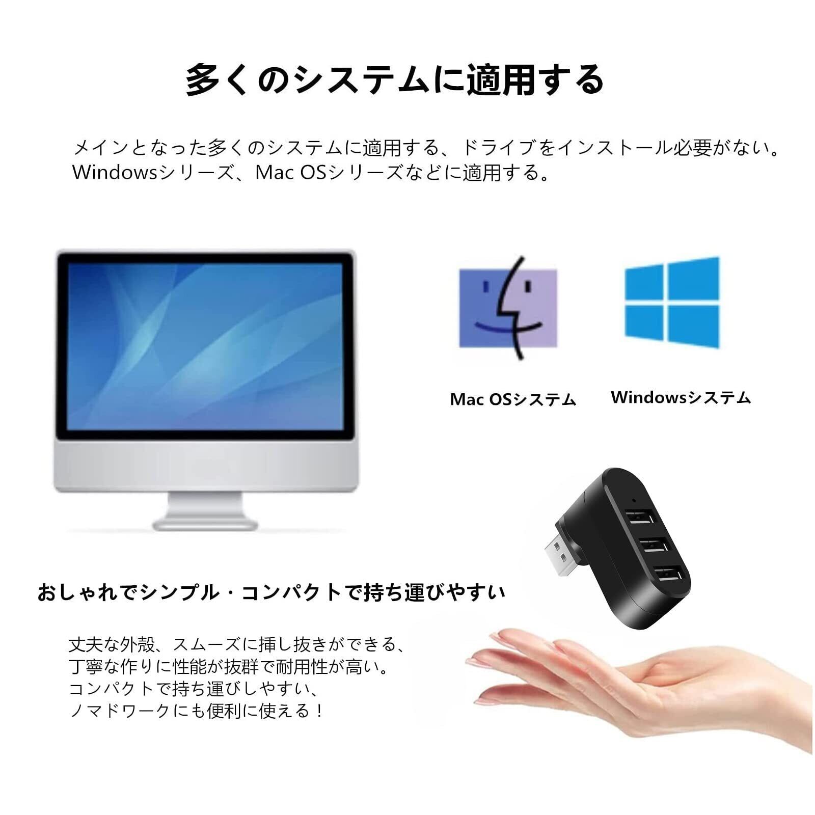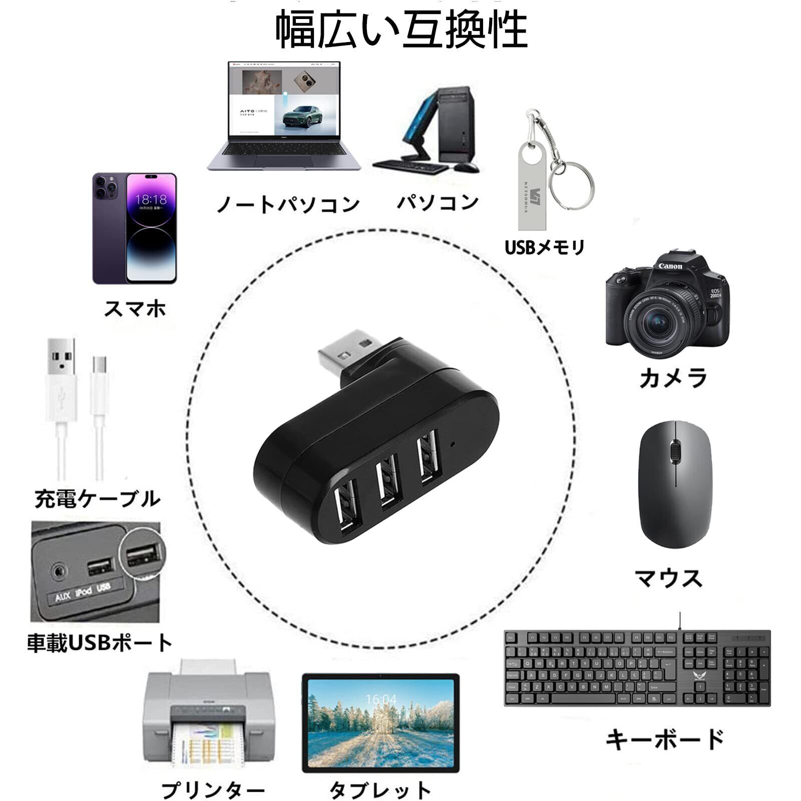ミニUSBハブ 3ポート USB2.0コンボハブ バスパワー 回転可能90°/ 180°usbハブ USBポート拡張 高速データ転送 軽量 携帯便利 (ブラック)