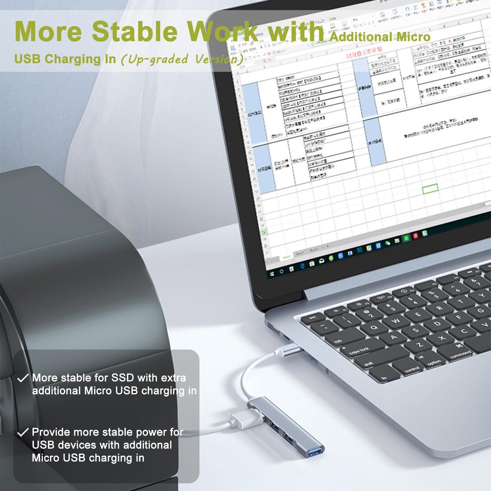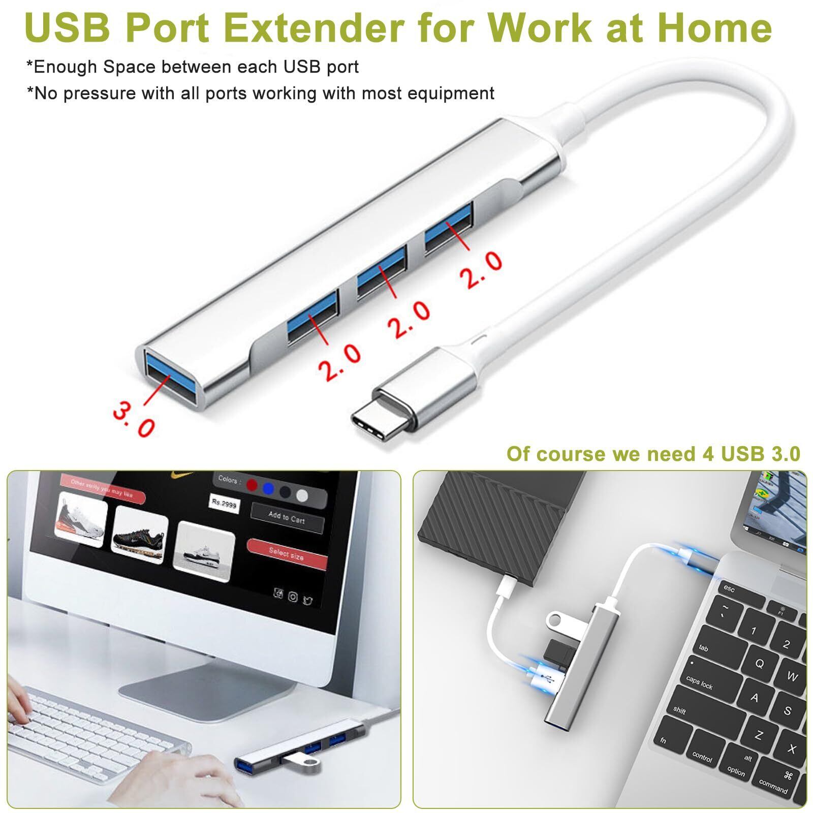 USB C 3.0ハブ 4イン1 USBポートハブスプリッター ウルトラスリム ハブドングルエクスパンダー ノートパソコン フラッシュドライブ、HDD、コンソール、プリンター、カメラ、Keyborad、マウス、5Gbpsデータ転送、アルミニウム