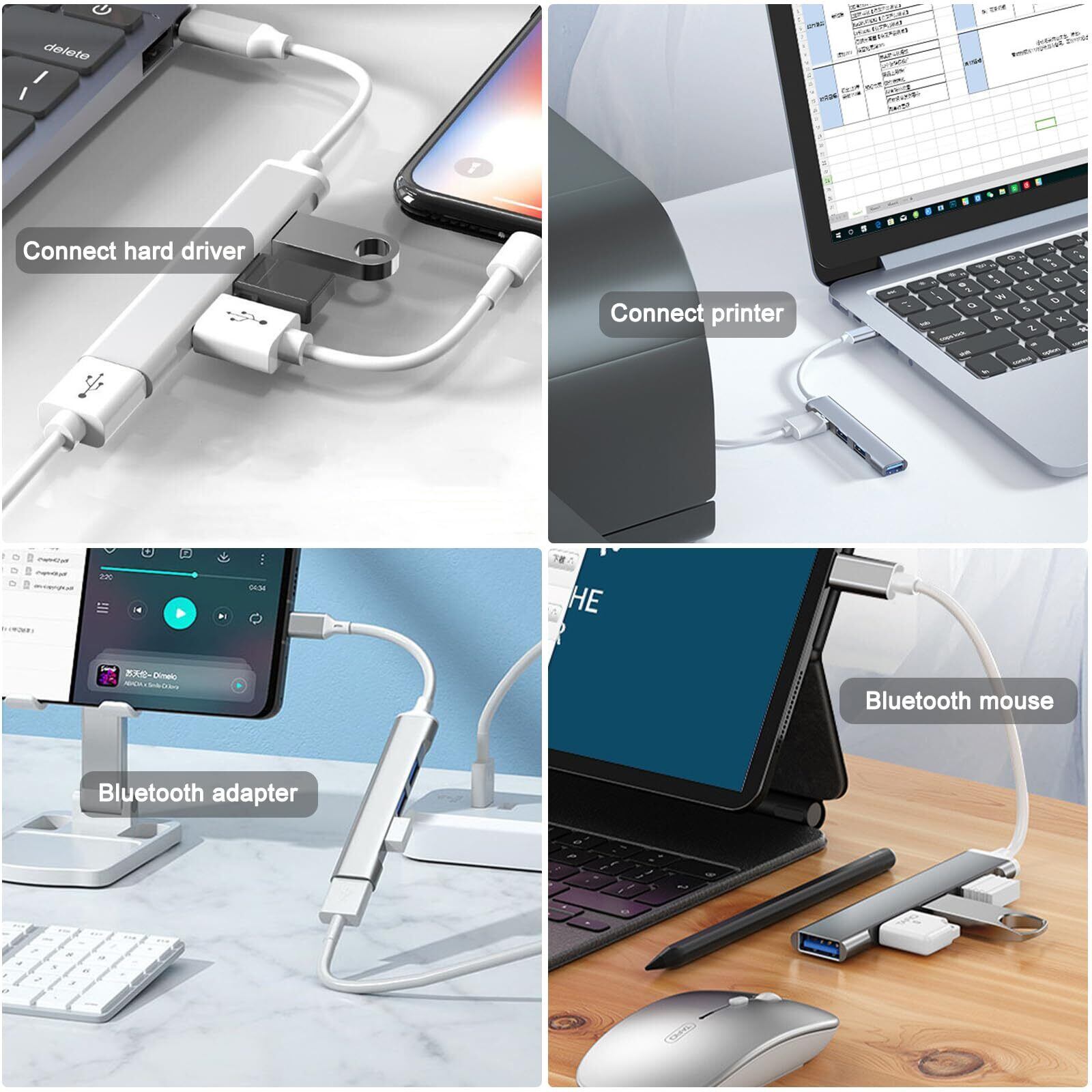 USB C ハブ 4 in 1、MacBook、iPad、iPhone、ノートパソコン、PC、タブレット用 USB C マルチポートアダプター、USB c スプリッター、Surface、XPS、Samsung と互換性のある 5Gbps データポート