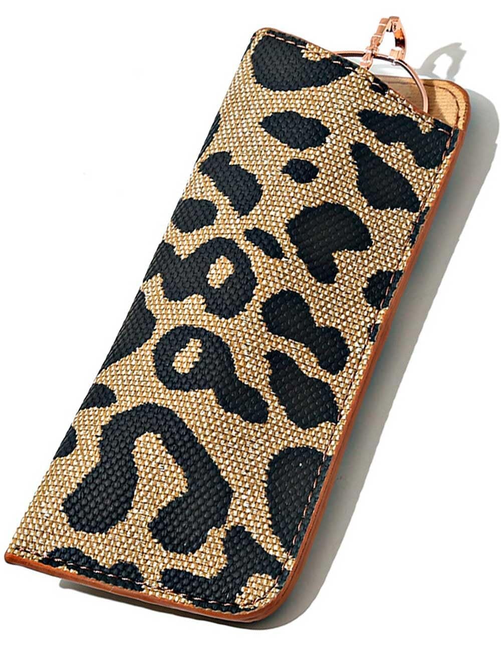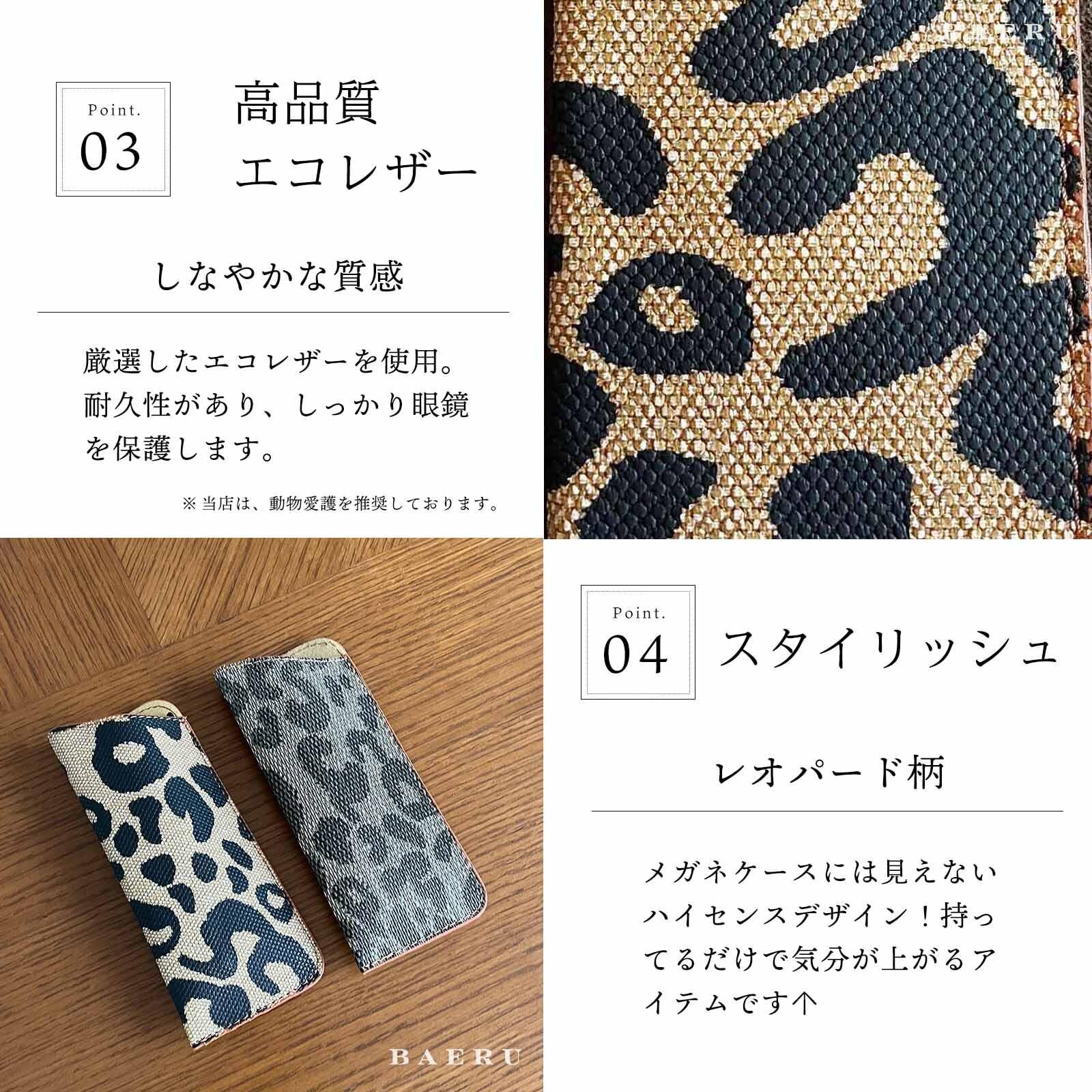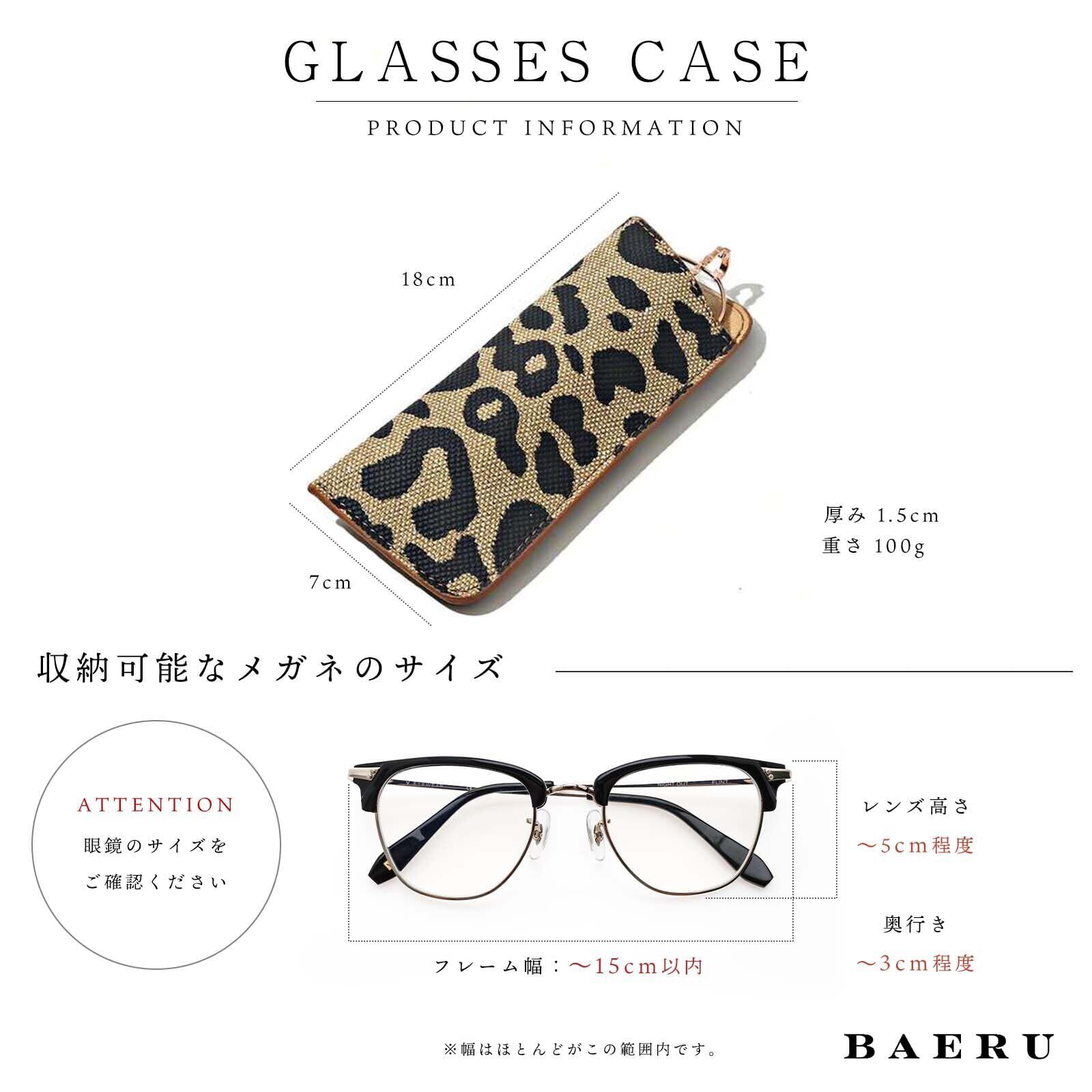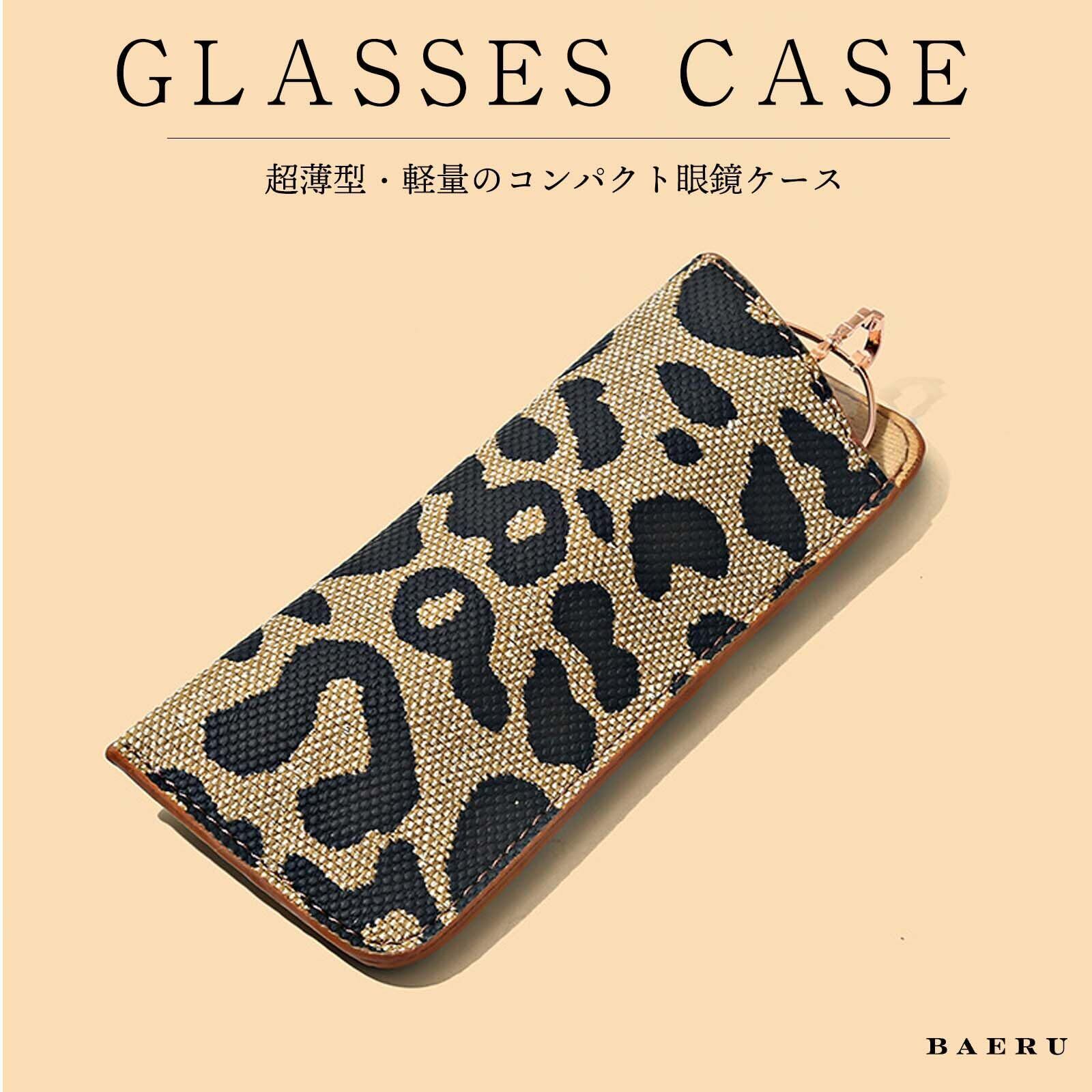[BAERU] メガネケース おしゃれ レディース 薄型 眼鏡ケース 老眼鏡 サングラスケース 軽量 スリム 薄型 メガネ めがねケース ソフトケース レオパード