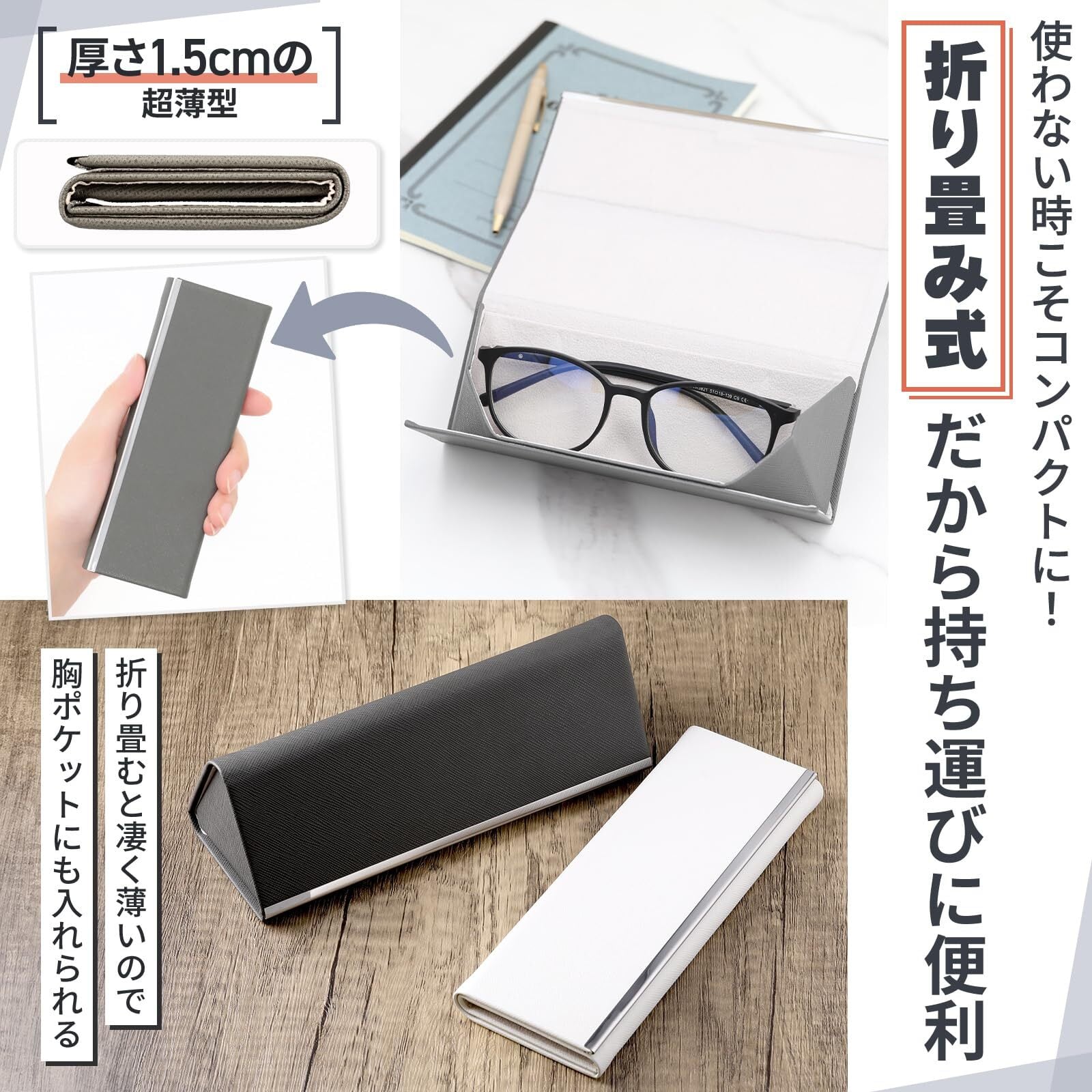 [Looca] メガネケース 【折り畳める薄型デザイン】 眼鏡ケース サングラスケース スリム 薄型 折り畳み おしゃれ セミハード メガネ拭き レディース メンズ