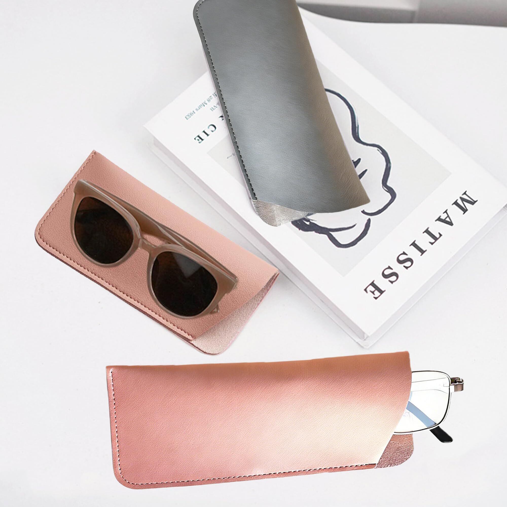 [KENASTA] メガネケース サングラスケース 2個セット おしゃれ スリム 薄型 軽量 PUレザー 鏡ケース 出し入れカンタン設計 レディース メンズ