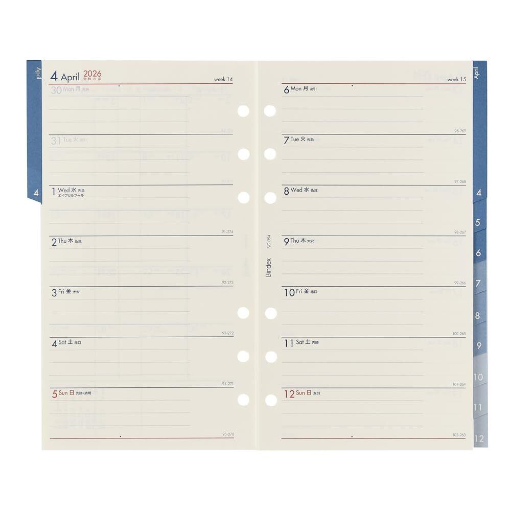 能率 バインデックス システム手帳 リフィル 6穴 2026年 バイブル ウィークリー 2週間横罫タイプ インデックス付 054 (2026年 1月始まり)