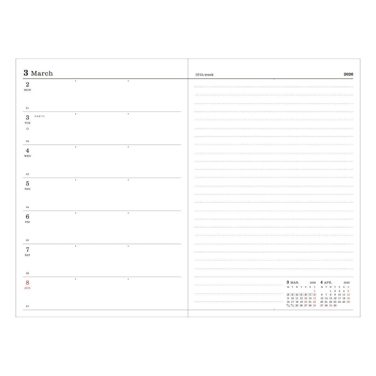 ※こちらは【リフィルのみ】の商品です。手帳のカバーは付属しておりませんので、別途ご購入ください。対応カバー:週間 B6正寸用