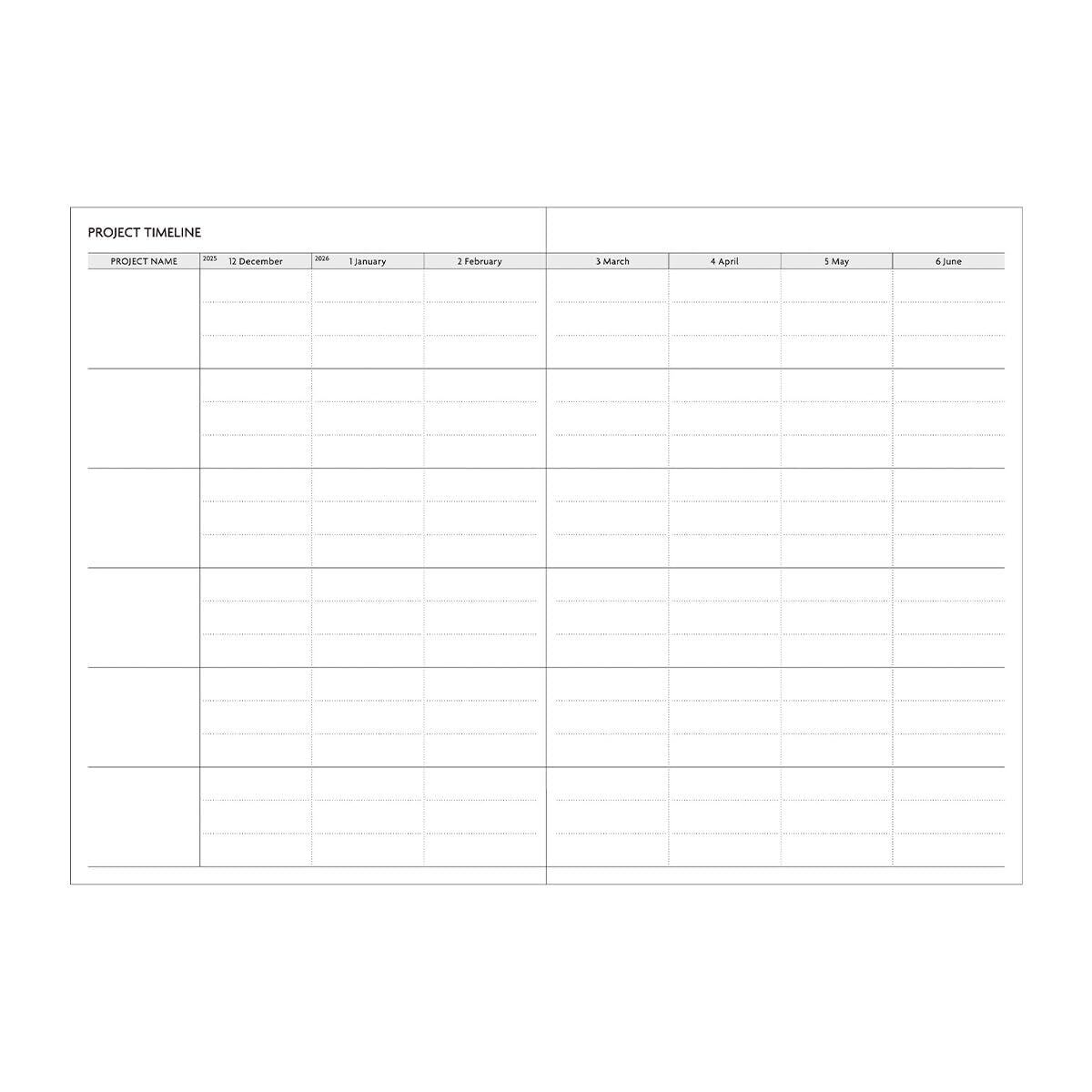 EDiTの直営店限定のA5サイズの週間ノート手帳のリフィル。3分割されたざっくりバーチカルを使って、プロジェクト管理、毎日のTO DO管理あるいは時間軸、項目分け、オン/オフなど目的別に1日・1週間を使い分けることができるのが特長の週間ノート手帳。下半分は、週ごとのTO DO管理やメモに最適で自由なノートスペースです。1週間の予定とメモを見開きで確認できる便利なフォーマットは、ビジネスにぴったり。巻末にはたっぷり書き込めるノートページも付いています。ノート感覚でライトに、あるいはカバーをしてお使いください。