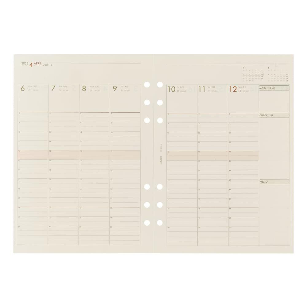 能率 バインデックス システム手帳 リフィル 6穴 2026年 A5 ウィークリー バーチカルタイプ A5-012 (2026年 1月始まり)