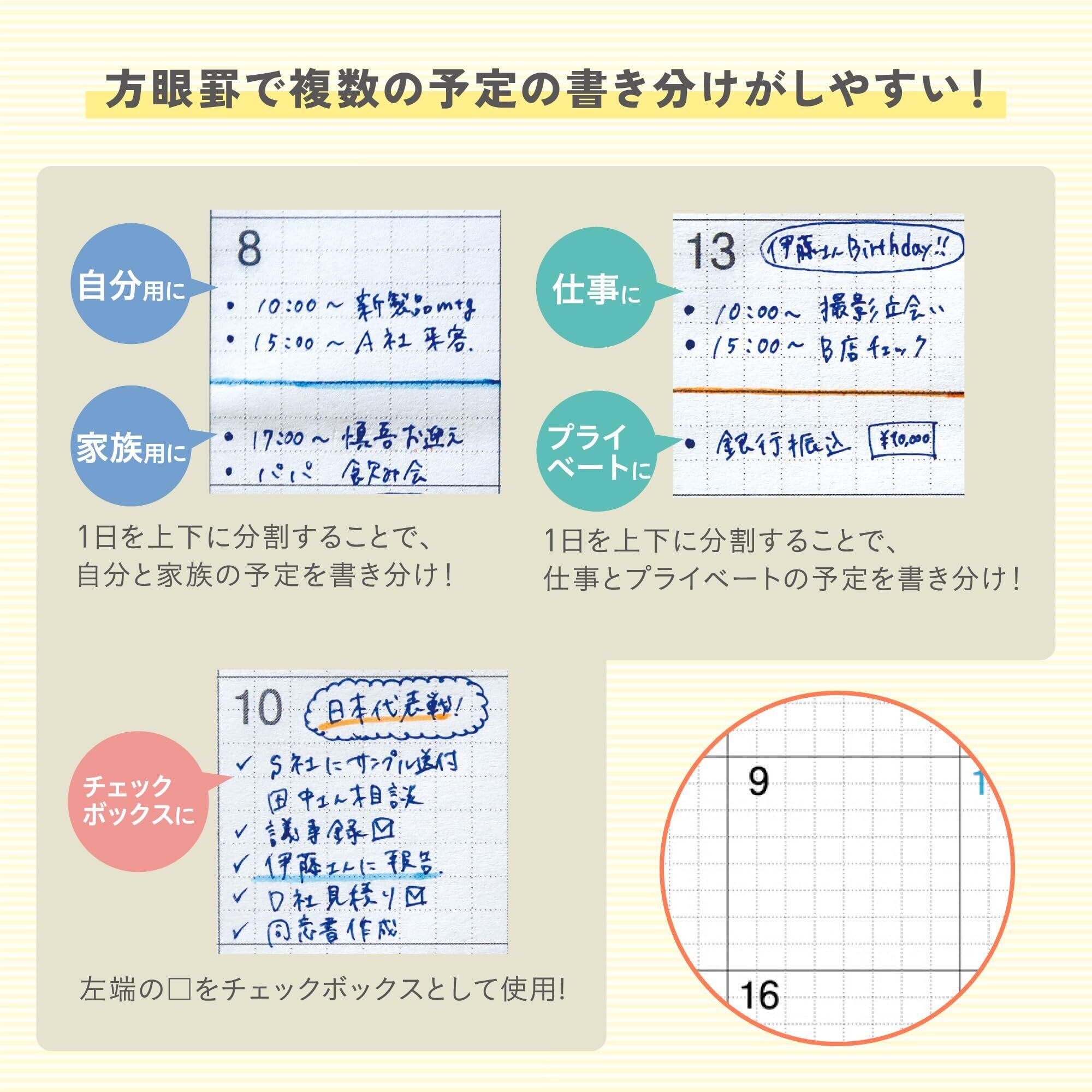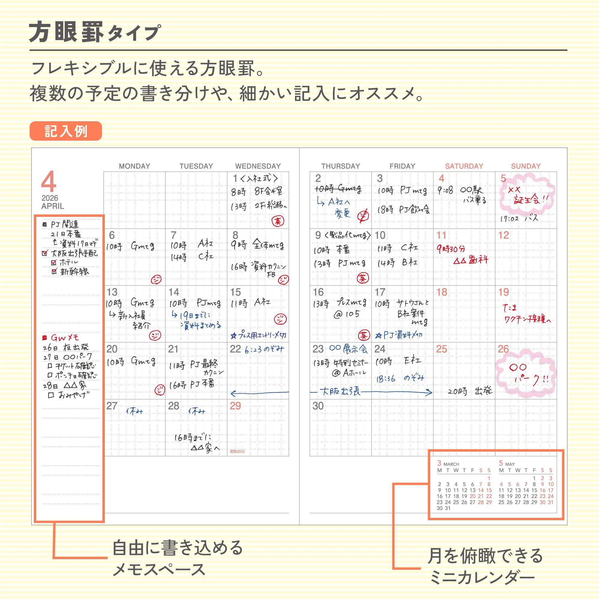 ・デジタルと併用でスケジュール管理をする方にもぴったりな見開き両面1カ月のブロック式。