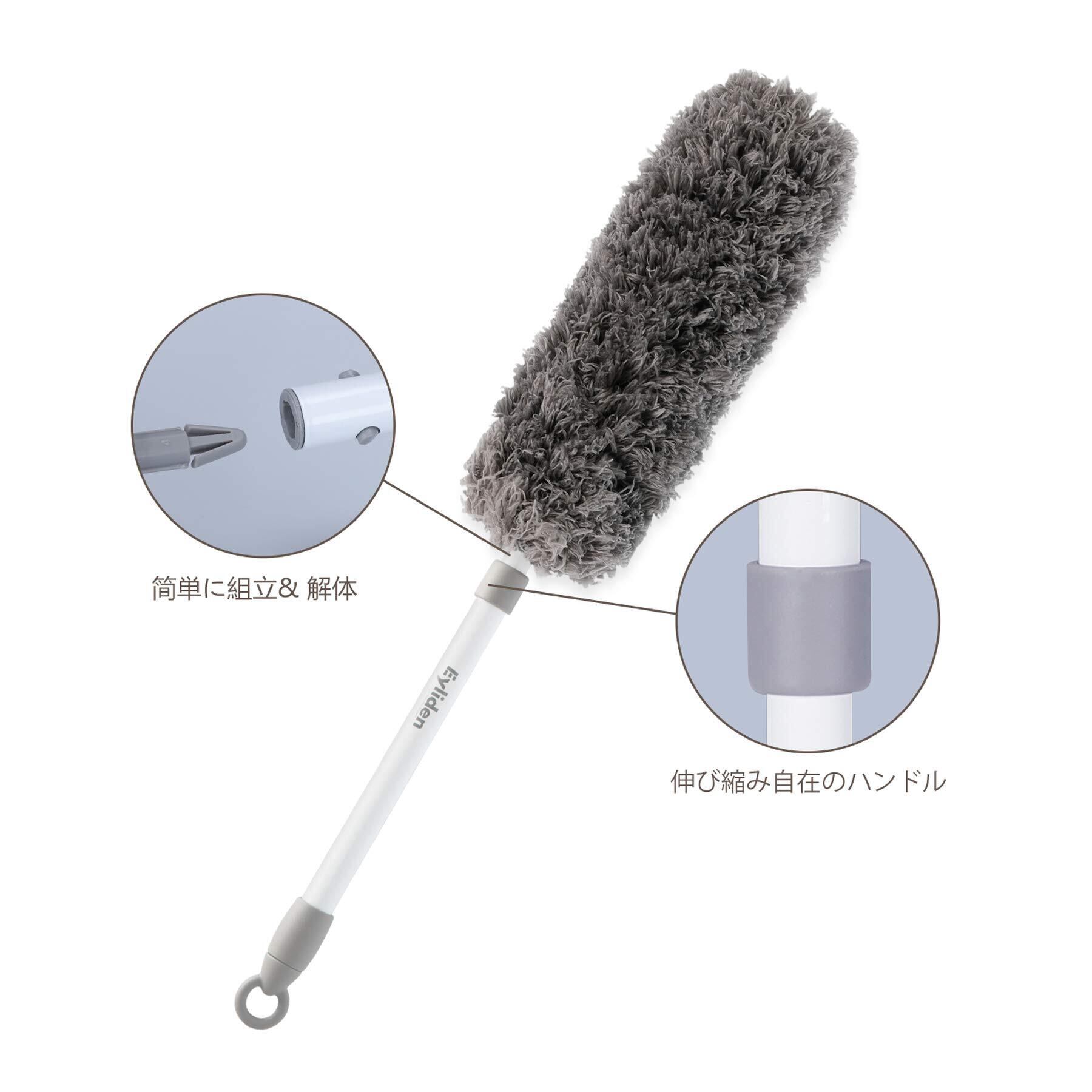 Eyliden. ダスター はたき ほこり払い ホコリ取り モップ ほこりキャッチャー グレー ガラス掃除 軽量 取替え可 伸縮仕様 マイクロファイバー コンパクト
